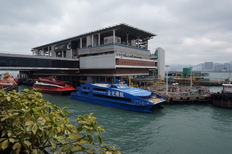 We arriveerden gisteren in Hong Kong en zoiets doe je (helaas) niet zonder jetlag. Gelukkig zorgde ons avondlijke drankje in de hippe Zoo Bar ervoor dat we als een roosje sliepen, dus dat slaperige gevoel zijn we vandaag helemaal kwijt. Mooi, dat komt goed uit. We zullen vandaag namelijk opnieuw heel wat kilometers gaan afleggen. De eerste zeventig daarvan mogen we gelukkig achterover leunen in een comfortabel zitje op de Cotai WaterJet, een ferry die in iets meer dan een uur naar Macau vaart. De meeste veerboten naar Macau vertrekken aan het Shun Tak Centre, een winkelcentrum op nauwelijks vijf wandelminuten van ons hotel. Het traject Hong Kong – Macau wordt door verschillende maatschappijen aangeboden en je wordt in dat winkelcomplex dan ook langs alle kanten bestookt met goedkope ferrytickets. De meeste van deze boten varen naar de grote ferryterminal van Macau, die dicht bij het stadscentrum te vinden is. Wij moeten echter naar de minder drukke Taipa Ferry Terminal, die zich in de nabijheid van ons hotel voor komende nacht bevindt. We opteren daarom voor de Cotai WaterJet, waar een enkele reis naar Macau 160 HKD (ongeveer 16 euro) kost.