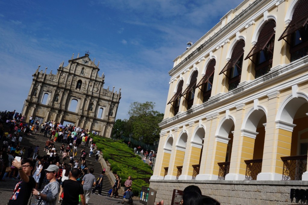 Zo mogelijk nog beroemder zijn de ruïnes van de São Paolo kathedraal, die op een heuvel midden in de stad te vinden zijn. Noem me gerust een cultuurbarbaar, maar mij doet die ene rechtopstaande gevel eigenlijk niets. Interessanter vind ik het fort dat er onmiddellijk naast te vinden is. Indien je bereid bent een aanzienlijk aantal trappen te nemen en indien je van een heldere hemel kan genieten, heb je hier namelijk een wijds panorama over de stad. Een beeld waarin de voorgrond bepaald wordt door een ingewikkelde structuur van straatjes en stegen en de achtergrond gedomineerd wordt door de hoogbouw van het moderne Macau.