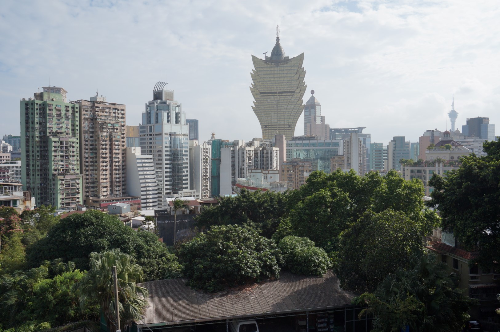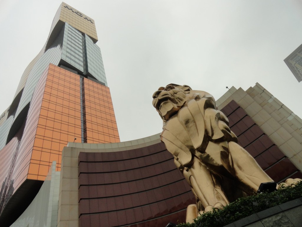 Na het droppen van onze spullen, trekken we de stad in. Een Galaxy-shuttle rijdt ons vliegensvlug naar het stadscentrum van Macau. Daar houden we ons, net als tijdens een gemiddelde reis naar Vegas, grotendeels bezig met het bezoeken van hotels. Het zijn ronkende namen als Wynn, Encore, MGM en het indrukwekkende Grand Lisboa die hier de skyline bepalen. Verwacht van deze vestigingen echter niet hetzelfde als van hun broers in Nevada. De MGM- en Wynn-resorts spelen qua verfijning ongetwijfeld in dezelfde klasse als hun evenknie, maar zijn binnenin (gelukkig) niet het gigantische labyrint dat je in Amerika aantreft.