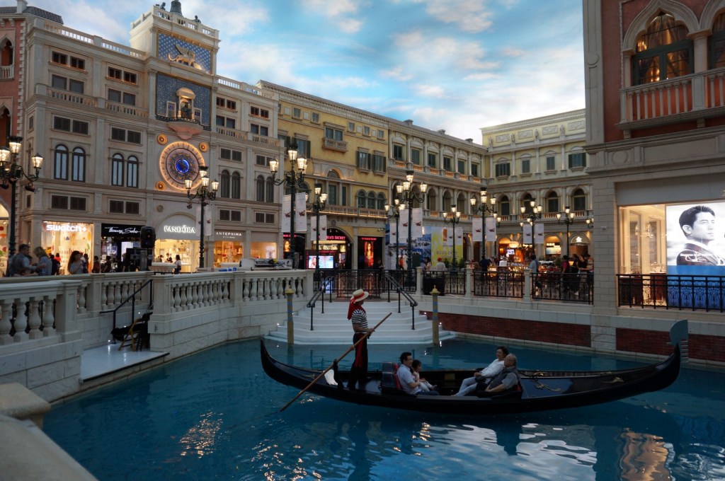 Na het oversteken van de Cotai Strip (en het subtiel ontwijken van de daarbij horende schaars geklede dames die je heel veel plezier beloven) belanden we in The Venetian Macau. Dit in 2007 geopende resort is grotendeels gebaseerd op het acht jaar eerder ingehuldigde origineel in Las Vegas. The Venetian Macau was het eerste megacasino aan de Cotai Strip en stond dus aanvankelijk ietwat verloren in een grote lege vlakte. Anderzijds: de vele beschikbare ruimte heeft dit hotel goed gedaan. Waar de Amerikaanse versie ietwat opgepropt en chaotisch oogt tussen de andere hoogbouw, komt The Venetian Macau een stuk statiger en ruimtelijker over. Maar niet enkel het exterieur is een plaatje; ook binnenin schotelt men je heel wat eyecandy voor. Toch is er voor ex-Vegasbezoekers weinig nieuws te ontdekken: de inkomhal is quasi identiek, het shopgedeelte minstens even desoriënterend en het casino even bombastisch als in de Verenigde Staten.