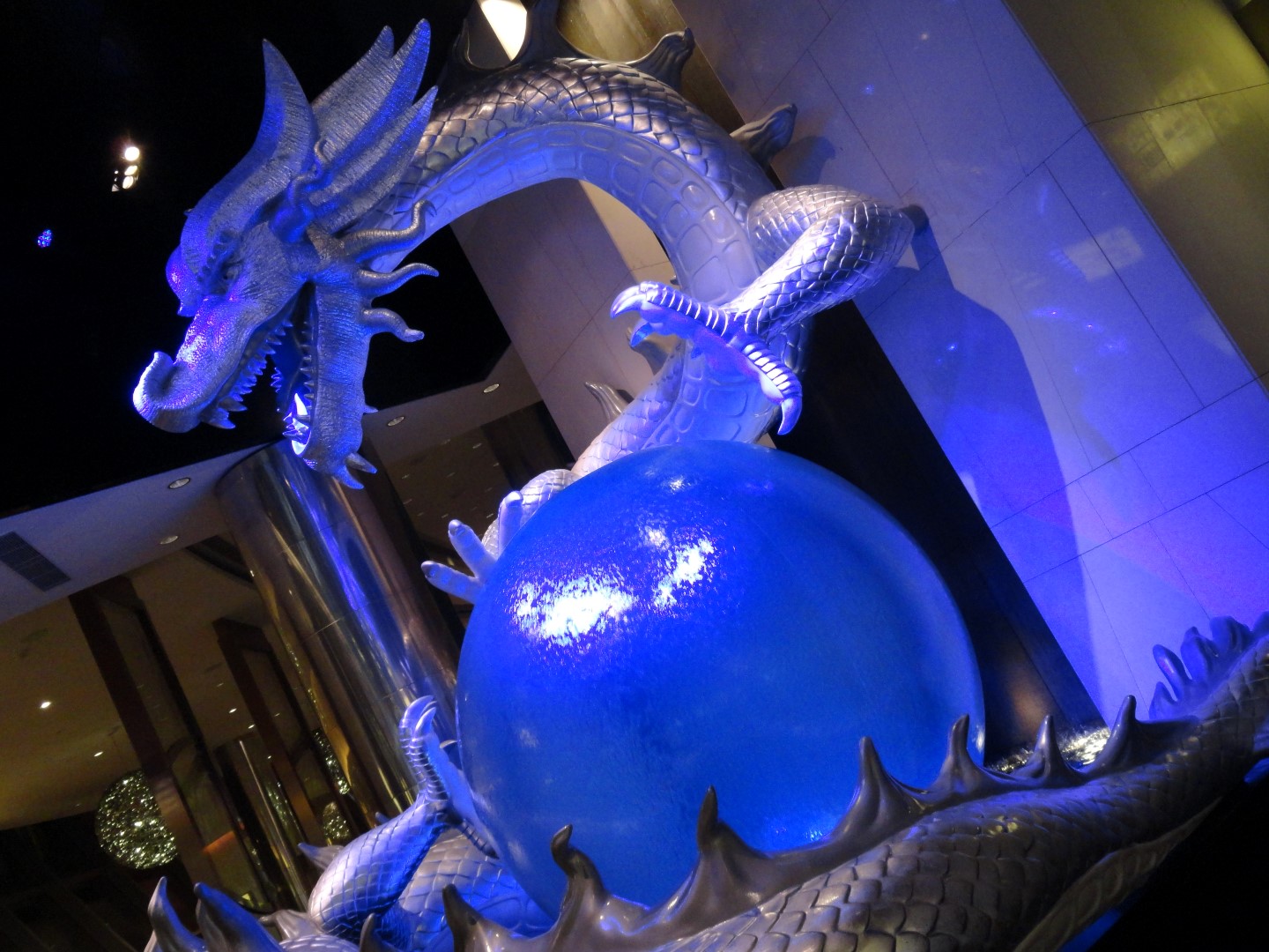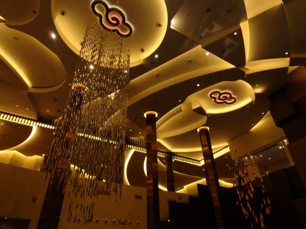 Mis in Wynn Macau trouwens het Rotunda Atrium niet. In deze ronde zaal speelt zich om de zoveel tijd een gratis show af die al het moois van een led-scherm, een draak, een kroonluchter en een met bladgoud beklede geluksboom combineert tot een fantastisch geheel. Visueel topvermaak.