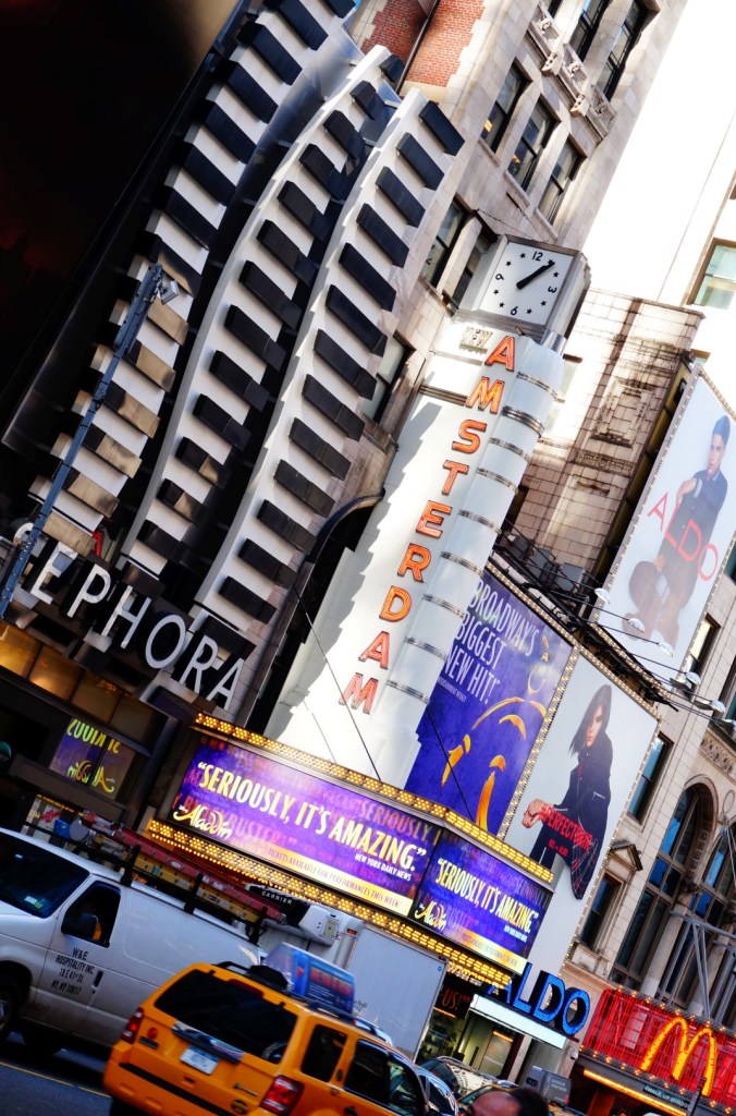 Het officiële welkom in New York laten we verzorgen door Adam Jacobs, Courtney Reed en James Monroe Iglehart. Nooit van hen gehoord? Wel, ik eerlijk gezegd ook niet. De namen van hun alter ego’s klinken echter bekender in de oren: vanaf acht uur vanavond zien we hen schitteren als Aladdin, Jasmine en Genie. Times Square omvat namelijk meer dan billboards en clochards. Het is eveneens het bruisende centrum van New Yorks beroemde theaterdistrict. Op en rond Broadway sieren enorme borden vol knipperende lampjes de toegangspoorten van tientallen theaters. Wat we verwachten van een gemiddelde Broadway-productie? Fabelachtige decors, schitterende kostumering, veel bling-bling en (vooral) songs om bij weg te dromen. We krijgen het allemaal en dat zelfs in beduidend hogere proporties dan we ooit durfden wensen.