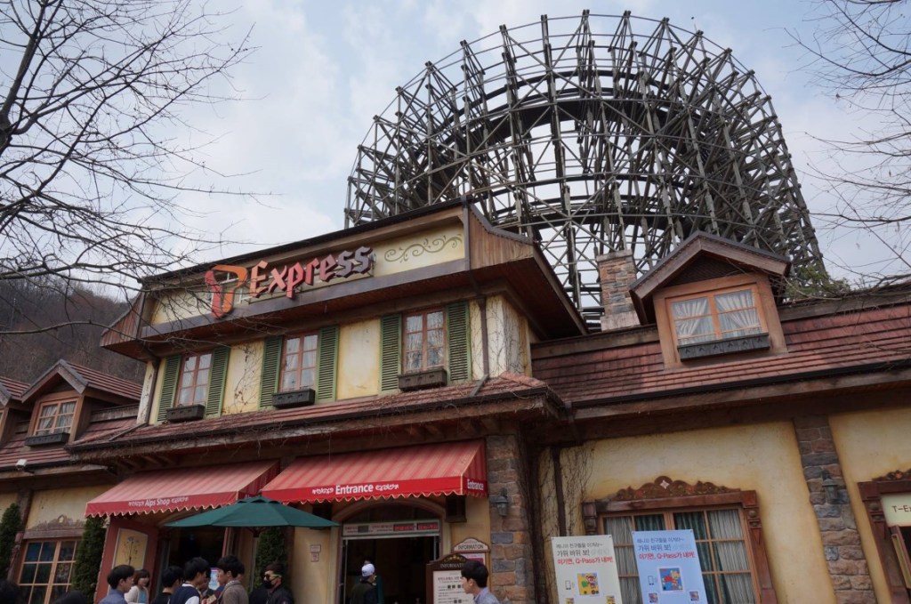 Een ervaren achtbaanliefhebber denkt bij Everland wellicht meteen aan T Express. Niet onterecht, want het ding transformeerde dit vrij nietszeggende pretpark in 2008 naar een must-do voor coasterfans. Everland zocht naar een signature ride en Intamin klaarde de klus. Men pootte een gigantische woodie in het rustieke Alpine Village neer. De statistieken zijn indrukwekkend: T Express is 56 meter hoog, hij haalt een topsnelheid van ruim 100 kilometer per uur en de eerste afdaling heeft een hellingsgraad van 77 graden. De locatie maakt T Express zo mogelijk nog indrukwekkender, want men bouwde de baan tegen een heuvel aan. Wanneer ik vanuit de vallei naar dit houten gevaarte kijk, voel ik me dan ook ontzettend klein. Oppa Intamin Style!