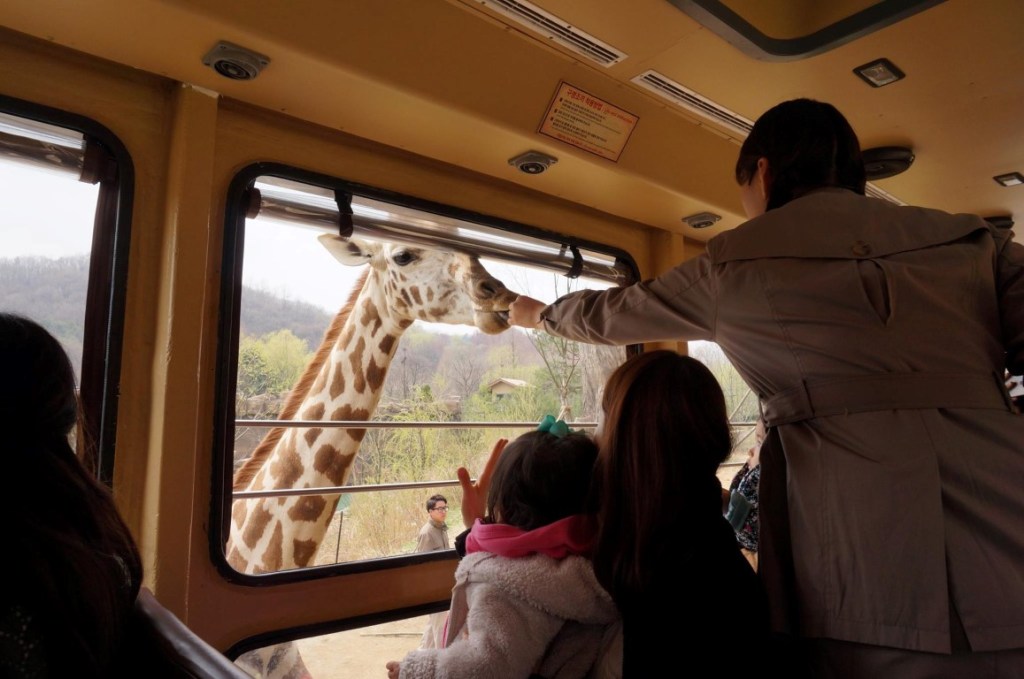 Compliment aan Everland voor deze beide rides. Nog nooit bracht een dierenpark me zo dicht bij levensgevaarlijke dieren. Het oogt allemaal minder professioneel dan in Disney’s Animal Kingdom, waar de leefomgevingen tot in een ziekelijke perfectie nagebouwd werden. Maar net door de toevoeging van verhoogde rotspartijen en platformen langs de rijbaan, naderen we de tijgers en leeuwen hier in Everland tot op enkele tientallen centimeters. Of wat dacht je van een giraf die vanuit de truck gevoederd wordt? Ik ben geen fervent bezoeker van dierenparken, maar deze beide rides zijn wel erg geslaagd opgebouwd. Het feit dat we er op deze kalme weekdag slechts enkele minuten voor moeten aanschuiven, is natuurlijk extra mooi.
