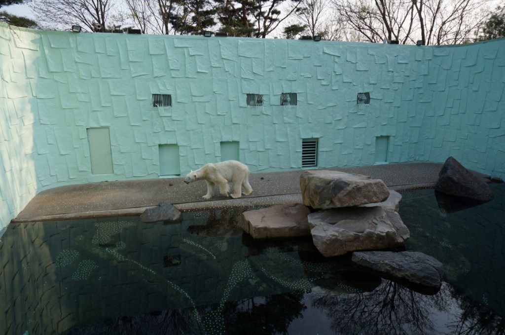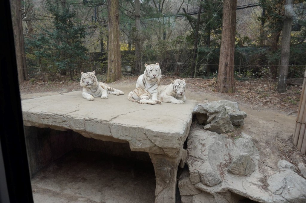 Omdat de achtbaan niet zo beestig als gehoopt is, zoeken we het beestige avontuur maar in themazone Zoo-Topia. In tientallen dierenverblijven langs de bergwand spotten we stokstaartjes, papegaaien, apen van allerlei soorten, honden (!) en een ijsbeer die het met een wel erg karige leefomgeving moet doen. Het is een beetje de algemene tendens van vandaag: hoewel Everland qua onderhoud en aanleg best goed scoort, voelt de algemene infrastructuur van het park nogal verouderd. Maar als er een gebied ons vandaag op aangename wijze verrast, is het wel de koloniaal aangepakte hoek van Zoo-Topia. Welkom in Afrika.