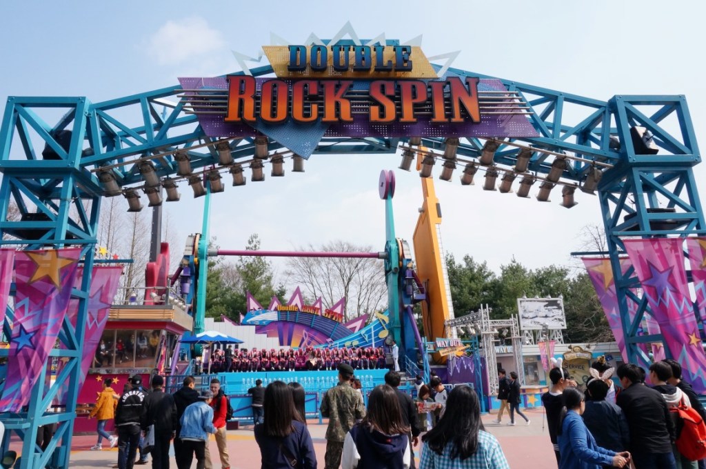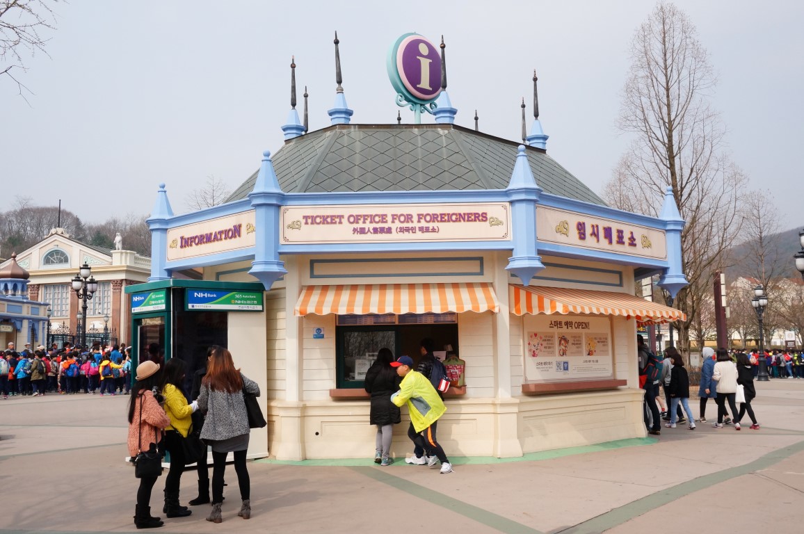 Wanneer de taxichauffeur ons aan de toegangspoorten dropt, lijkt het alsof elke school van het land een uitstapje naar Everland op de agenda zette. Tientallen schoolgroepen staan in een plechtig uniform aan de groepsingang. Wij moeten gelukkig niet in die enorme rij aansluiten en we worden zelfs niet bij de standaard kassahokjes verwacht. Neen, als buitenlander ben je hier een heuse VIP en staat het (wachttijdloze) Ticket Office for Foreigners ter onzer beschikking. We worden er extreem vriendelijk en in nagenoeg perfect Engels ontvangen. Het positieve plaatje wordt pas helemaal compleet dankzij de korting die Everland aan buitenlanders toekent. Gewoon even een speciale voucher op de parkwebsite afdrukken en je spaart enkele duizenden Koreaanse won uit. Handig!