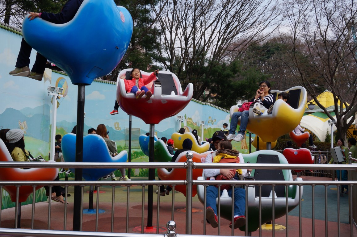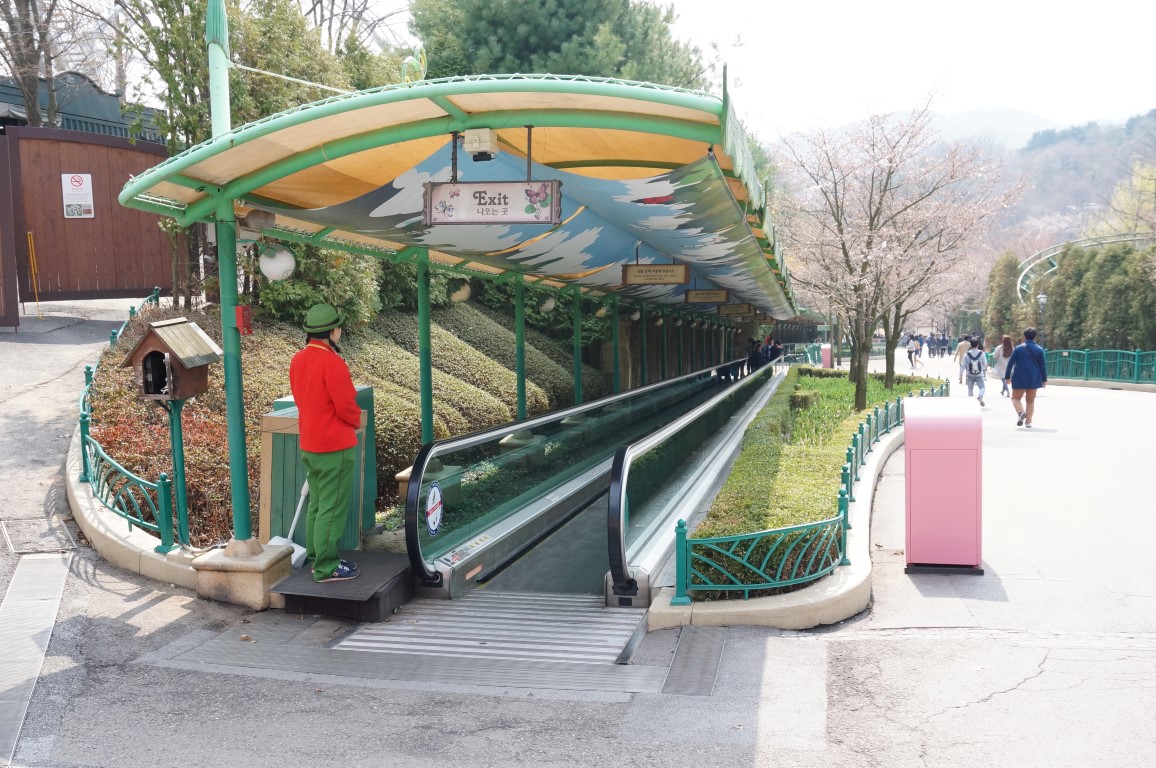 Everland is een gigantisch park en er is veel te doen. Dankzij de zo goed als lege wachtrijen hebben we het tegen een uur of vijf echter wel gezien. We weten dat er nog een multimediashow en vuurwerk volgt, maar we brengen onze avond liever in Seoul door. Vanuit Lost Valley is het een aardige klim naar de uitgang van het park, maar Everland helpt ons met rolbanden. Leuk feitje: elke rolband krijgt een eigen personeelslid dat je op het einde waarschuwt voor het opstapje. We zien steeds de ietwat paniekerige blik in hun ogen wanneer wij als westerlingen naderen, waarop ze met een schattig uitgesproken Attention naar de grond wijzen. Hartelijk bedankt, ook deze attractie hebben we dus veilig overleefd.