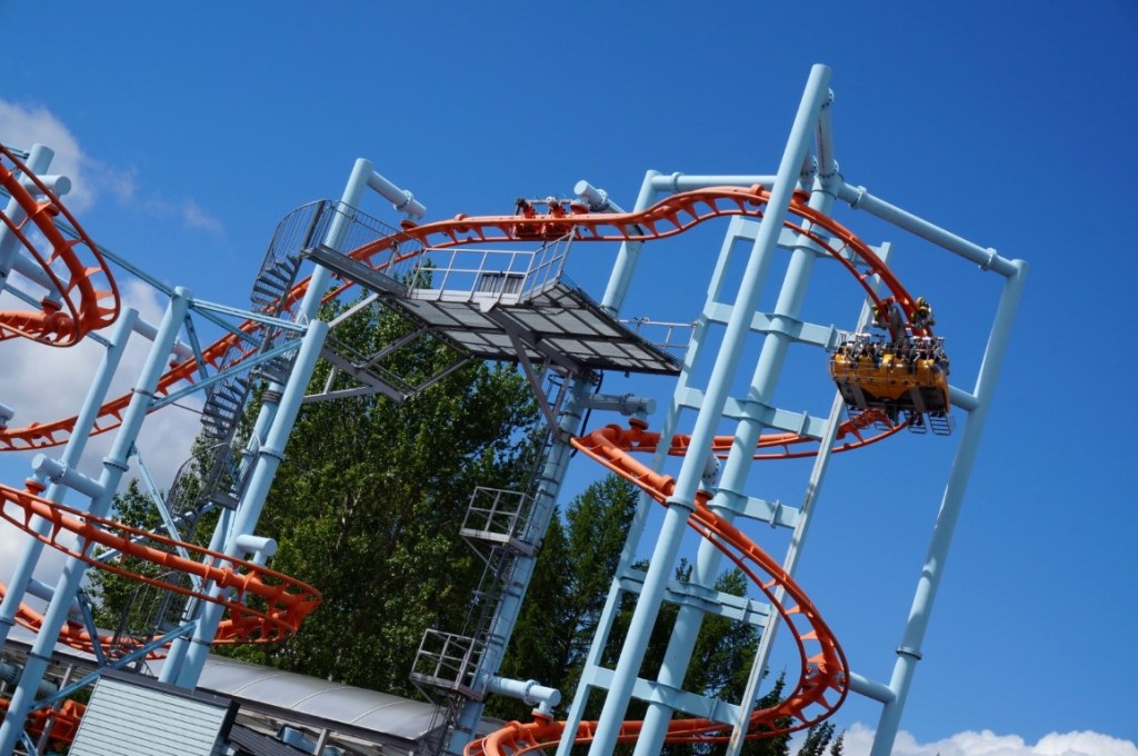 Het grijs is niet louter in de wachtruimte en het stationscomplex opvallend, maar komt tevens in de tracks en de ondersteuningen terug. Wordt het op die manier niet erg kil? Valt best mee: Särkänniemi voorzag deze coaster immers van de meest flashy voertuigen die coasterland ooit zag. Het is once again een kwestie van smaak of je die kleurcombinatie weet te appreciëren, maar we vragen ons vooral af of de ritervaring kan overtuigen. En dat doet hij verbazend goed! Na een stevige first drop waagt deze coaster zich aan vijf inversies, waarvan vooral nummer vier eentje om in te lijsten is. De trein lijkt in een donkere tunnel te verdwijnen, waarna je met een rotvaart door de inline twist boven het opstapperron gesleurd wordt. Na een tweede dergelijke twist kom je opnieuw tot stilstand. Mijn verdict: Tornado is een topper! Geheel turbulentieloos verloopt de rit misschien niet, maar verder blijft de baan van de eerste tot de laatste seconde boeiend.