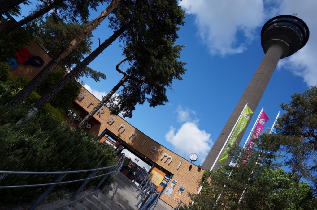 Bovendien laat de groene armband me toe om meer verschillende facetten van Särkänniemi te ontdekken. Naast een attractiepark, vind je hier immers ook een dolfinarium, een klein dierenpark, een aquarium, een planetarium en de Näsinneula-toren. Deze bijna 170 meter hoge observatietoren is al van ver herkenbaar. Je kan als parkgast naar het 120 meter hoge panoramaplatform sjezen of – als het wat meer mag zijn – kan je lunchen in het één verdieping hoger gelegen ronddraaiende restaurant. Ik hou het bij de budgetoptie en geniet van het prachtige uitzicht op deze heldere middag. Het wordt daarboven niet enkel duidelijk dat Tampere zich middenin een eindeloze massa van natuurpracht nestelde, maar ook dat Särkänniemi locatiegewijs niet moet onderdoen voor pakweg Tivoli Gröna Lund.