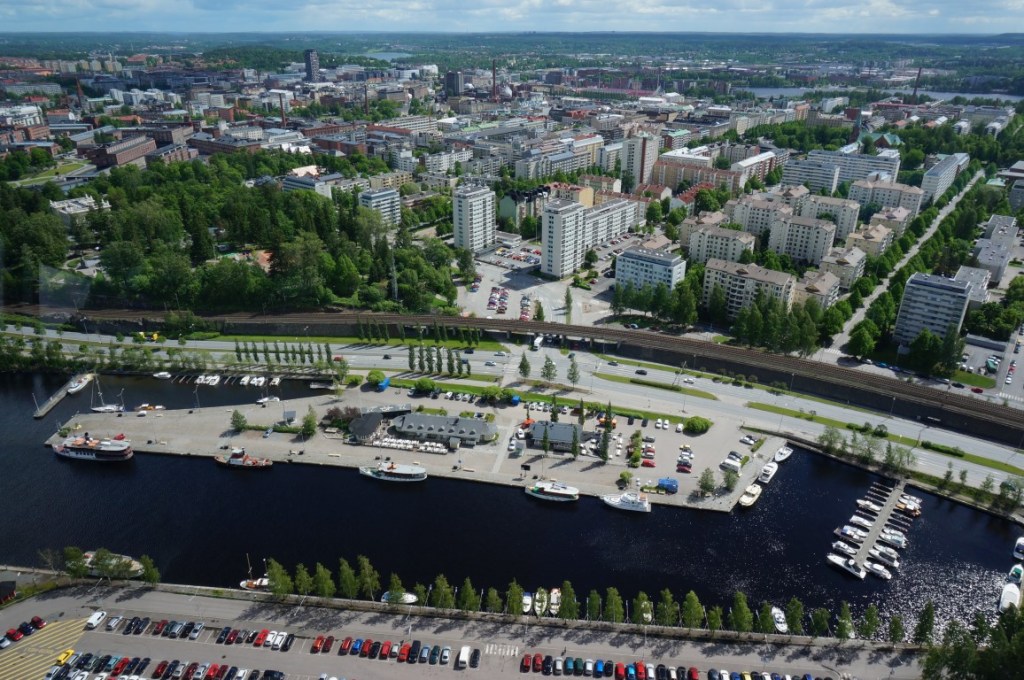 Net zoals gisteren in Helsinki, laat ik het openbare vervoersnetwerk voor wat het is. Een pijl die vlak voor het stationsgebouw staat, leert me immers dat Särkänniemi nog geen tweeënhalve kilometer verder ligt. Bovendien blijkt de wandeltocht een heerlijk ongedwongen ontdekking van Tampere, een plaatsje waar ik nauwelijks een week voordien nog nooit over gehoord had. Ik volg de hoofdboulevard vol winkels en horeca, steek een schilderachtige waterloop over en kom zo op het levendige centrale plein waar de inwoners vanmiddag hun streepje zon meepikken. Vervolgens leidt een schaduwrijke wandelroute me via rustige woonwijken naar de waterkant. Wanneer ik daar arriveer, zie ik plezierjachten dobberen in een klein haventje terwijl er op de achtergrond een knaloranje Intamin-trein door een looping raast. Olemme täällä!
