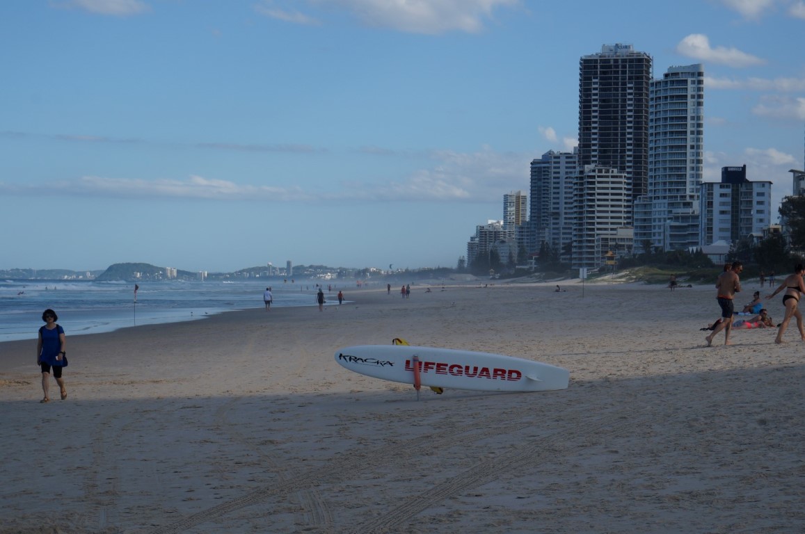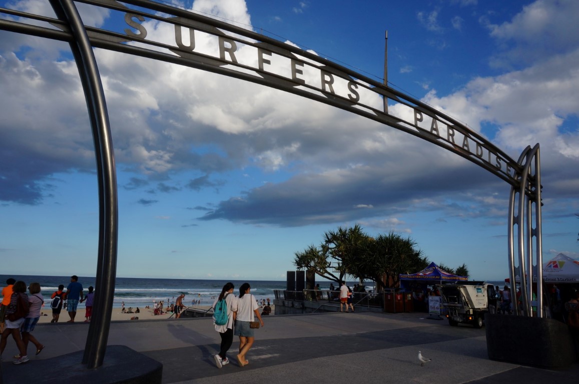 Het is paasmaandag en de Aussies zijn nog steeds in opperste vakantiestemming. Ze trekken er massaal op uit naar de toeristische hotspots en wij volgen hen richting Gold Coast. Deze kustplaats is na Brisbane de grootste stad van Queensland en wordt door de Australiërs gezien als een ultiem weekendje weg. Het mooie weer is hier quasi gegarandeerd, de stranden zijn parelwit en de oceaan rolt in zulke perfecte golven over het zand dat surfers hun hartje volop kunnen ophalen. Dankzij de beroemde Themeparks on the Gold Coast is er bovendien ook voldoende te beleven voor diegenen die niet 24/7 willen bruinbakken op een opengevouwen handdoek.