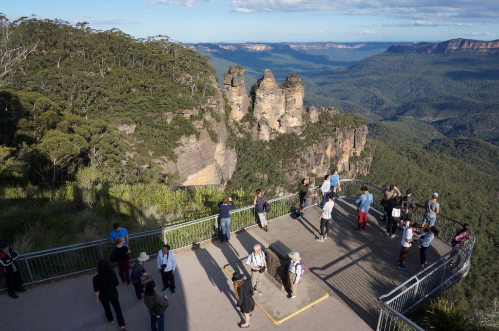 De belangrijkste reden om die Aziatische invasie te trotseren: een glimp opvangen van The Three Sisters. Om dit must-have (doch allesbehalve originele) plaatje te maken, moet je trouwens zowat twintigduizend Chinezen in ’t ravijn duwen. Het doel heiligt de middelen, right? Een andere mogelijkheid om de verplichte foto/selfie te maken zonder dat daar tientallen hoofdjes met pikzwart haar op staan: twintig meter verder lopen. Chinese toeristen zijn immers zoals de mannetjes in Rollercoaster Tycoon. Ze zullen alleen maar voor de kortste en makkelijkste weg kiezen.