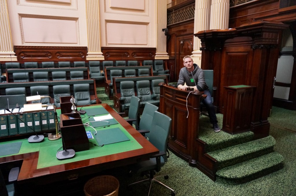 Als Belg ben je soms terecht geneigd om politieke ontwikkelingen niet meer te volgen. Het gaat er in ons land immers vaak zo onbegrijpelijk aan toe dat m’n interesse naar een historisch laag peil gezakt is. En als ik het in België niet volg, waarom zou ik mezelf dan in godsnaam verdiepen in de politiek van een land aan de andere kant van de planeet? Toch komt Michaël op de proppen met het idee om het Parliament of Victoria te bezoeken. Het statige gebouw ligt centraal in de binnenstad van Melbourne en bovendien is er ook hier een gratis sightseeing-tour beschikbaar (valt het op dat we vandaag de budgetvriendelijke toerist uithangen?). De rondleiding duurt ongeveer een halfuur en we krijgen zowat elk interessant hoekje van het gebouw te zien.