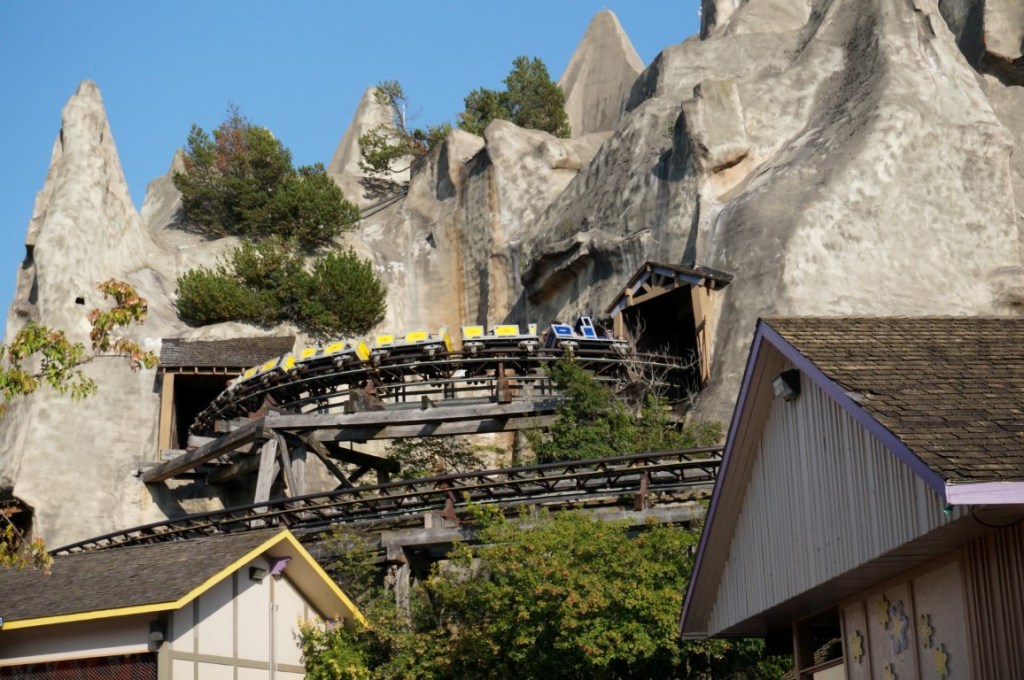 We zijn inmiddels bij de Wonder Mountain, het icoon van Canada’s Wonderland. Deze artificiële berg is zo enorm dat er niet alleen die oninteressante Wonder Mountain’s Guardian, maar tevens een familiaal georiënteerde achtbaan in past. Mack mocht een powered coaster leveren en die rijdt grotendeels door de grotten van deze berg. Dankzij de bovenstaande beschrijving zou je kunnen vermoeden dat deze Thunder Run vergelijkbaar is met Alpenexpress in Europa-Park, al is dat veel te hoog gegrepen. Deze grot is immers niet gevuld met fonkelende kristallen of groene dwergjes. We moeten het daarentegen doen met gekleurde kerstlampjes, iets wat de ervaring een nogal goedkoop tintje geeft. Overbuur The Fly is evenmin legendarisch. Deze standaard wild mouse is tevens afkomstig uit de fabriek van Mack en ligt er kaal bij. Wat me wel positief opvalt, is de snelheid. Vaak worden de voertuigen van een wild mouse voortdurend afgeremd, maar in Canada’s Wonderland blijft de snelheid tot de laatste seconde hoog. Op die manier is deze coaster toch een beetje leuk.