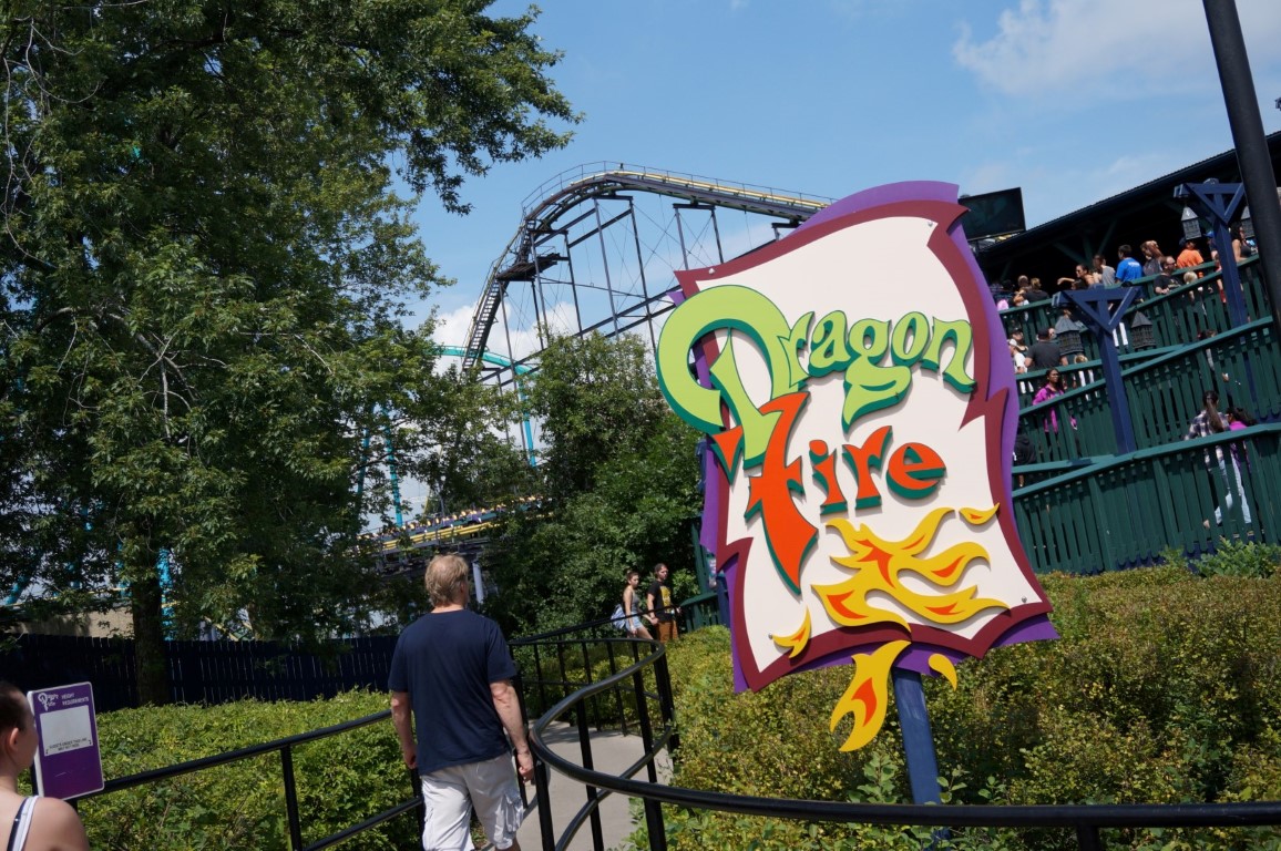 Vlakbij Leviathan staan er nog enkele andere coasters, al zijn die minder interessant dan hun beroemde buurman. Nummer één is Dragon Fire, een klassieke Arrow inversiecoaster. Deze baan is 25 meter hoog en bevat vier inversies. Het is een quasi identieke – doch gespiegelde – kopie van Big Loop in Heide-Park, inclusief die twee gekke horizontale passages. Verder is Dragon Fire vooral ehm, tja… oud. Het perron ziet er afgeleefd uit en voor de soepelheid moet je het zeker niet doen. Puur creditmateriaal en die blauwe plekken krijg je er gratis bij.