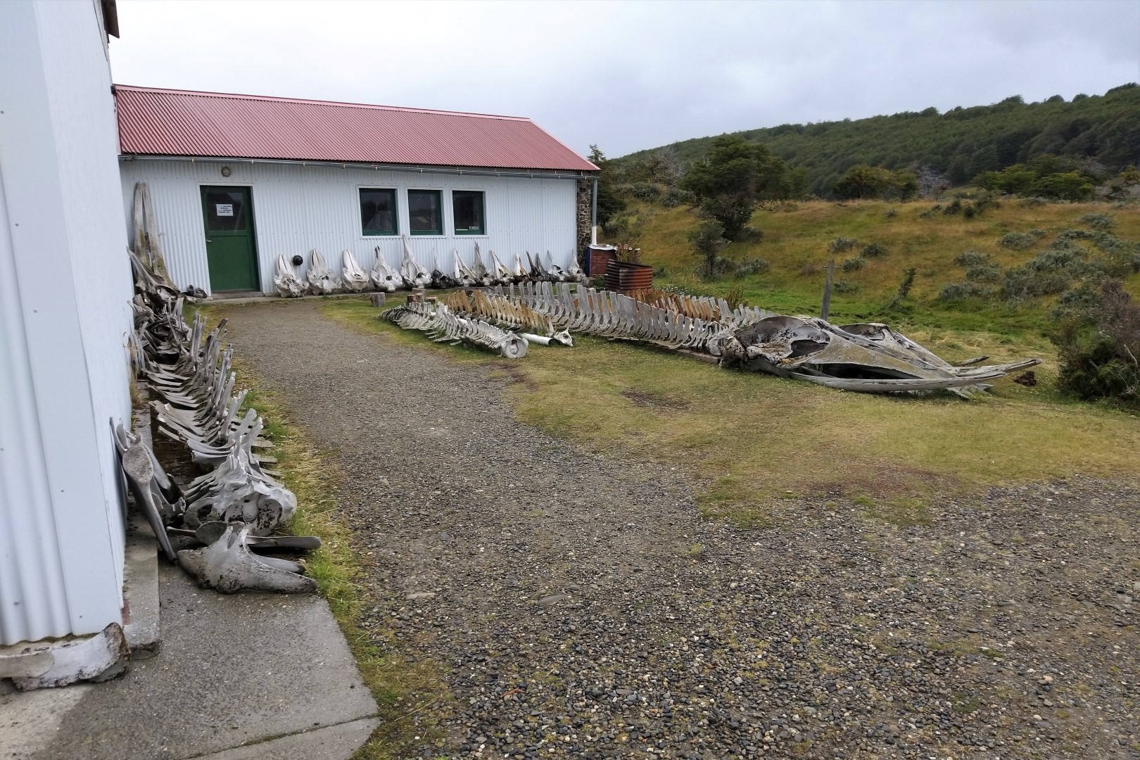 Het is ongeveer halftwaalf wanneer de Eclaireurs aanmeert bij Harberton Ranch, het eindpunt van onze boottocht. Deze Estancia – zoals ze dat in ‘t Spaans mooier uitdrukken – ligt ongeveer zestig kilometer van Ushuaia en werd in 1886 gesticht door de Britse missionaris Thomas Bridges. Tegenwoordig wordt de ranch nog steeds geleid door familieleden van Thomas Bridges en de hoofdactiviteit is toerisme. Wat er allemaal op zo’n Estancia te zien is? Eerlijk gezegd… niet erg veel. Het is weliswaar een mooie plek waar heel wat charme af straalt, maar je hebt het allemaal vlug gezien. Het lokale museum bestaat uit één kamer met skeletten uit de onderwaterwereld en een buitengedeelte voor de grotere gevaartes.