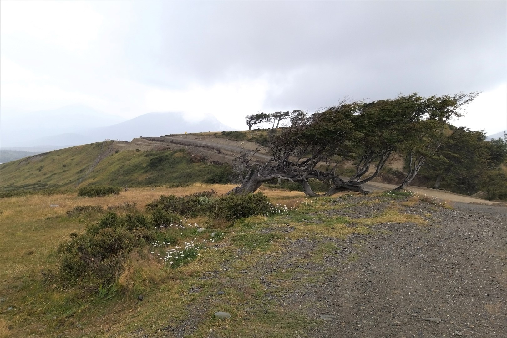 Het was fris en nat, maar oh wat heb ik van ons bezoek aan het eiland genoten! Terwijl we afscheid nemen van Isla Martillo en z’n extreem aaibare bewoners, komt ook onze dag met Piratour ten einde. We hebben weliswaar nog een twee uur durende busrit richting Ushuaia voor de boeg, maar dat levert geen legendarische momenten op, tenzij je deze zogenaamde Flag Tree echt bijzonder vindt. Deze bizar gevormde bomen worden gevormd door de wind, die in Patagonië eigenlijk altijd opvallend fel is. Doordat het altijd vanuit dezelfde richting waait, krijgen de bomen hun vlag-achtige vorm. Ze zijn zichtbaar op de route tussen Harberton Ranch en Ushuaia, dus de bus houdt er kortstondig halt voor foto’s. Veel interesse is er echter niet bij m’n medepassagiers.
