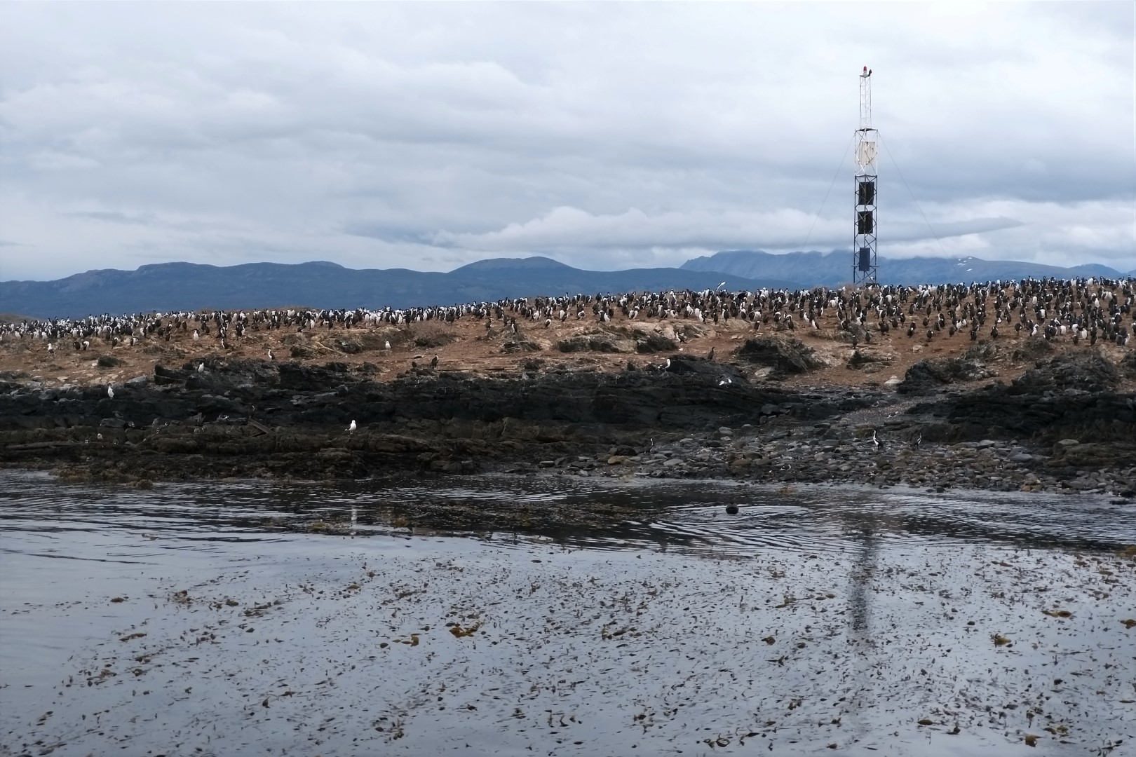 Om klokslag negen uur worden de trossen los gegooid en vertrekken we voor een vaartocht van zowat tweeënhalf uur op het Beaglekanaal. Onze gids – ik ben de naam kwijt, maar laat ons haar Cornelia dopen – spreekt vloeiend Spaans (duh) en Engels. Ze blijkt bovendien een stuk minder kinderlijk te vertellen dan die beruchte dame uit Singapore. Godzijdank, dat valt allemaal mee. En terwijl Ushuaia achter ons kleiner wordt, komt de eerste bestemming vrijwel meteen in zicht. Die bestemming is Isla de los Pajaros, wat vrij eenvoudig vertaald kan worden naar Eiland van de Vogels. Wanneer we dichterbij komen, zien we inderdaad al snel dat er duizenden wit-zwarte vogels aanwezig zijn. Nog vooraleer de eerste medepassagier extatisch ‘Pinguïns!’ kan uitroepen, tempert Cornelia de pret. ‘These aren’t penguins’, zegt ze vastberaden. De Magelhaenaalscholver die we in groten getale zien, lijkt er vanaf een afstandje nochtans fel op. Gelukkig gaan we die andere (veel populairdere) beestjes straks nog uitgebreid kunnen bewonderen.
