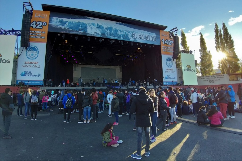 Omdat we hier tijdens een toeristische topmaand komen, voelt El Calafate bijna als een Europese commune aan. Driekwart van de huidige populatie bestaat immers uit Nederlandse backpackers, Franstalige natuurliefhebbers en Duitse hikers. De enige plek waar we ons echt door locals omringd voelen, is in het plaatselijke amfitheater. We maken hier het Fiesta Nacional del Lago mee. El Calafate ligt aan de noordelijke oever van het enorme Lago Argentino en dat lijkt een geldige reden om jaarlijks een feestje te organiseren. We belanden daardoor toevallig op een gratis muziekfestival waar bekende namen optreden. Eerder deze week was bijvoorbeeld Juanes (ken je La Camisa Negra nog?) te gast en overmorgen komt Enrique Iglesias naar El Calafate.