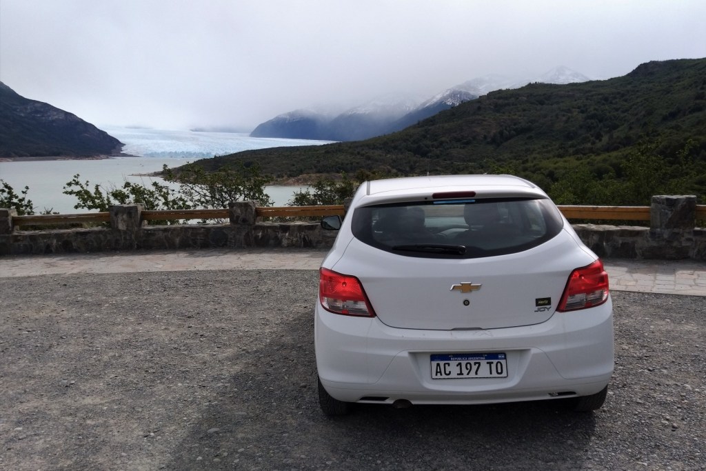 Argentijnen houden van zogenaamde miradors, panoramische punten waar je de auto effe kan parkeren om van het uitzicht te genieten. Zo’n mirador is bovendien ideaal om een foto te maken van de huurwagen die onze verplaatsingen tussen El Calafate, Glaciar Perito Moreno en El Chaltén veel eenvoudiger maakt. Centrale vergrendeling heeft ie trouwens niet, al blijft het een van de modernste voertuigen die ik in Argentinië gezien heb.