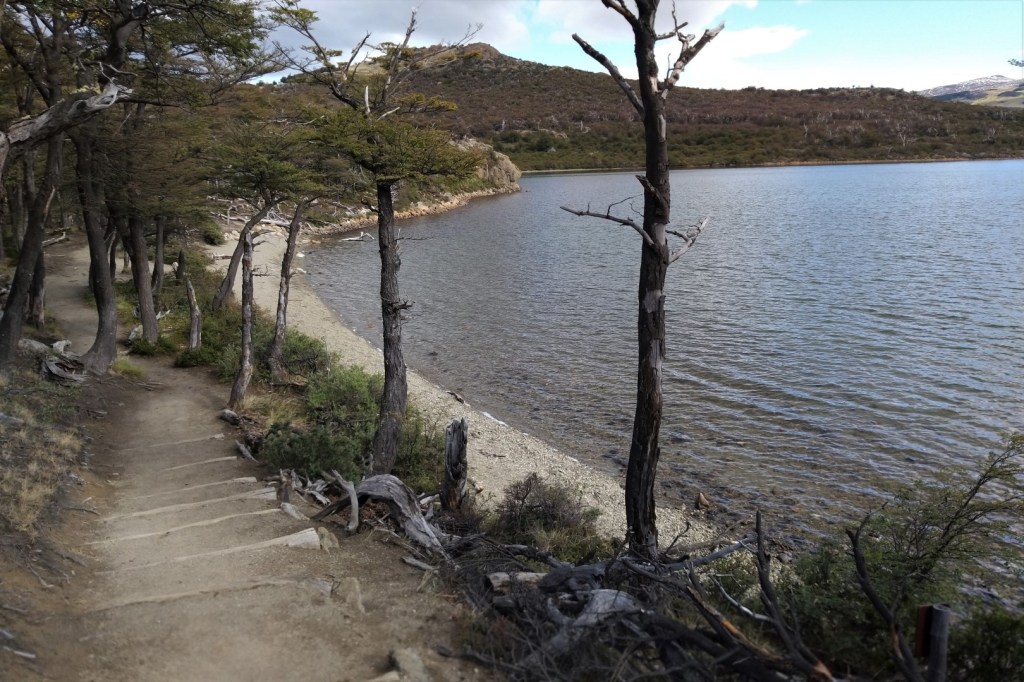 Na zowat drie kwartier foto’s maken en dromerig rondkijken, zetten we opnieuw koers naar El Chaltén. Dit is helaas geen cirkelvormige hike, dus onze wandeltocht terug ziet er min of meer hetzelfde uit. Het enige ‘nieuwe’ wandelpad is het lusvormige tussenstukje langs Laguna Capri. Qua kleur oogt dit meer minder buitenaards dan die lagune hoog in de bergen, maar lelijk zou ik Laguna Capri ook weer niet noemen. Integendeel zelfs. Op het bijhorende strandje wil ik wel aan een cocktail slurpen. Had ik al verteld dat de Patagonische natuur vele andere reisbestemmingen schaamtelijk doet verbleken?