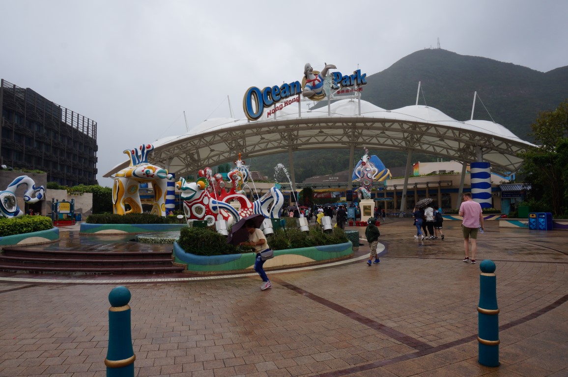 Ocean Park Hong Kong is legendarisch omwille van z’n spectaculaire locatie en de daarbij horende uitzichten. In mijn gedachten is dit pretpark echter vooral bekend omwille van de weersomstandigheden. Tijdens m’n eerste bezoek in 2013 viel de regen immers met bakken uit de hemel. Vandaag krijg ik een herkansing, want tezamen met Hjälmar, Niek en Carrie reis ik er opnieuw heen. Die trip werd trouwens een stuk eenvoudiger dan zes jaar geleden. Toen moesten we nog een tijdrovende tocht met een shuttlebus ondernemen, maar tegenwoordig dropt de metro van Hong Kong ons rechtstreeks aan de toegangspoort van Ocean Park. Dikke pluspunten voor de verbeterde bereikbaarheid, maar de slechte punten gaan nogmaals naar het weer. Net zoals in 2013 schuilt Ocean Park ook vandaag onder een grijs, regenachtig wolkendek.
