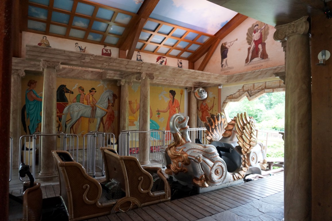 Die waterachtbaan is er (voorlopig) niet, maar ik kan in Familypark wel genieten van ander Mack-materiaal. Daarvoor moet ik naar Götterblitz, de grootste achtbaan die het park rijk is. Stel je daar vooral geen al te grootse dingen bij voor, want dit is die YoungStar Coaster waar ik het eerder over had. Dankzij z’n extra helix is deze iets langer dan de variant van Europa-Park, al verschilt de ritervaring uiteindelijk nauwelijks. De first drop is tof en de bochten bevatten meer pit dan je verwacht, maar het blijft een op-en-top familieachtbaan. Familypark integreerde de coaster (naar goede gewoonte) prachtig in z’n omgeving en er werd ook een knap stationsgebouw voorzien. Ik vraag me alleen af of Phantasialand het apprecieert dat men de soundtrack van River Quest in de wachtruimte gebruikt.