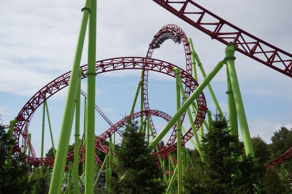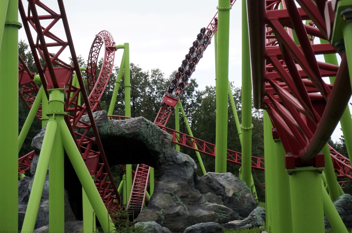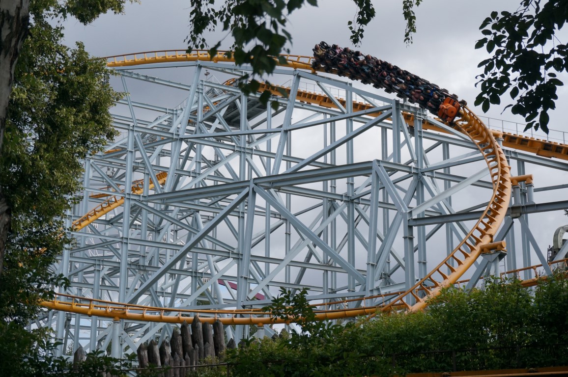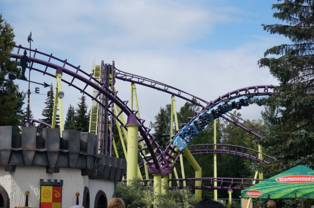 Divo Ostrov is een familiepark, maar er is meer dan voldoende thrill. Het park telt een groot aantal flat rides en drie van de vier rollercoasters bevatten inversies. Veel inversies. Tien keer over de kop in één enkele achtbaan, dat is mogelijk dankzij Velikolukskiy Myasokombinat-2. Bonuspunten voor de genieën die erin slagen om de naam correct uit te spreken, maar ik geef geen bonuspunten aan de ontwerpers van deze baan. Divo Ostrov opteerde voor een Intamin 10-Looping Coaster, een type dat je tegenwoordig wel vaker ziet. De lay-out is basic en vooral tijdens de tweede helft lijkt alle inspiratie zoek. Er waren maar liefst vijf heartline rolls nodig om het totaal van tien inversies te bereiken. En hoewel een dergelijke twist leuk is, zijn nummer twee tot en met vijf er echt te veel aan. Toch is er ook bij deze achtbaan goed nieuws te melden. De rit is intens, de veiligheidsbeugels zijn comfortabel en de baan rijdt heerlijk soepel.