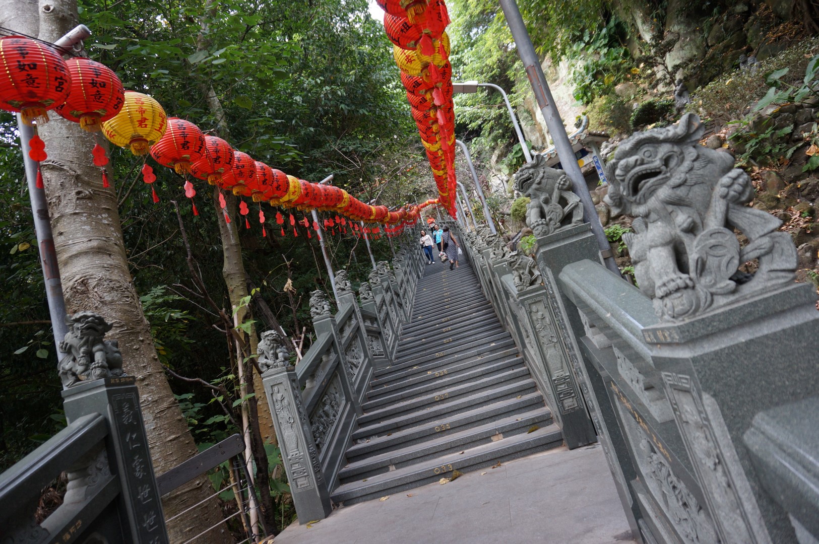 Xiangshan, zoals deze berg officieel heet, ligt ten oosten van de stad. Sommige reisgidsen en -websites definiëren het als een goed bewaard geheim, maar geloof me: dat is tegenwoordig niet meer het geval. Zeker de lager gelegen paden worden ‘s weekends overrompeld door locals en toeristen. Wij nemen een iets langere route en kunnen daarmee gedeeltelijk aan de drukte ontsnappen, maar je wandelt sowieso niet alleen. Wanneer we om ons heen kijken, begrijpen we echter maar al te goed waarom Xiangshan zo populair is. Je wandelt in een schitterende jungle-achtige setting en de uitzichten op het centrum zijn werkelijk fenomenaal. Hierboven wordt pas goed duidelijk wat voor een absurd grote stad Taipei eigenlijk is. Dat moet ook, want er wonen hier meer mensen dan in heel Vlaanderen.