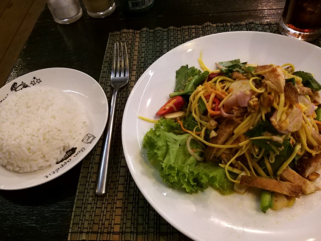 Vanaf een uur of zeven strijkt het merendeel van de buitenlandse bezoekers neer in Pub Street. Ook wij doen mee en we sluiten Pub Street in ons hart. De sfeer is levendig, we eten telkens lekker en naar Europese normen is het hier spotgoedkoop. Toch is dat in Cambodja relatief, want eigenlijk betaal je in Pub Street nog steeds een premiumprijs. Dat merk ik vooral wanneer we een paar honderden meters verder een rustiger restaurantje binnenstappen. M’n favoriete eetadresje in Siem Reap wordt namelijk Five Sons op Soksan Road. We ontdekken dit familiale restaurant dankzij de goede reviews op TripAdvisor en we worden niet teleurgesteld. De service is hartelijk, de maaltijden zijn heerlijk en de prijzen liggen lachwekkend laag. Vooral met hun Green Mango Salad – een Cambodjaanse specialiteit en lekker verfrissend tijdens zo’n zwoele avond – scoren ze hier punten. Het voelt surreëel om met z’n tweeën op restaurant te gaan voor amper 8 USD, maar het kan.