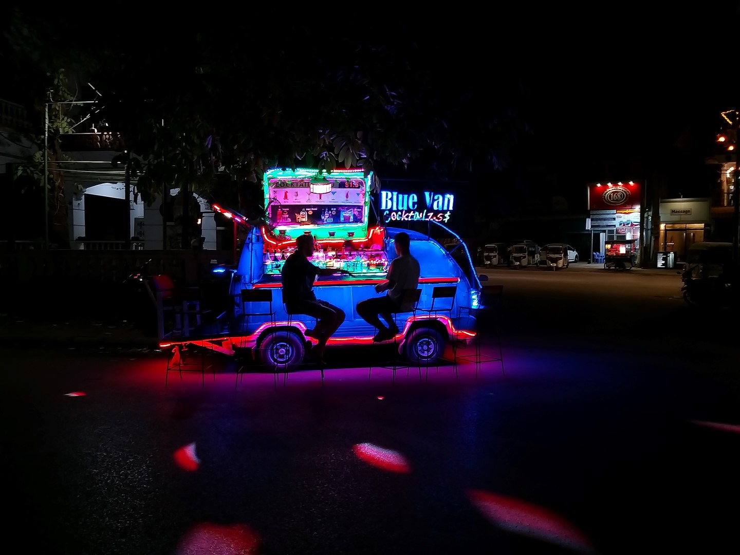 Ook voor de drankjes na het diner zijn er absurd goedkope opties. In de populairste zaken van Pub Street betalen we ongeveer vijf dollar voor een cocktail, maar in de zijstraatjes kan je voor zo’n prijs al aardig tipsy worden. Je zit dan weliswaar niet in zo’n comfortabele, hippe lounge. Neen, een heleboel cocktailbars in Siem Reap bevinden zich in een piepkleine caravan. De uitbaters van deze cocktail vans nemen het overigens niet nauw met de doseringen en ze zetten hun muziek minstens even luid als de bars in Pub Street.