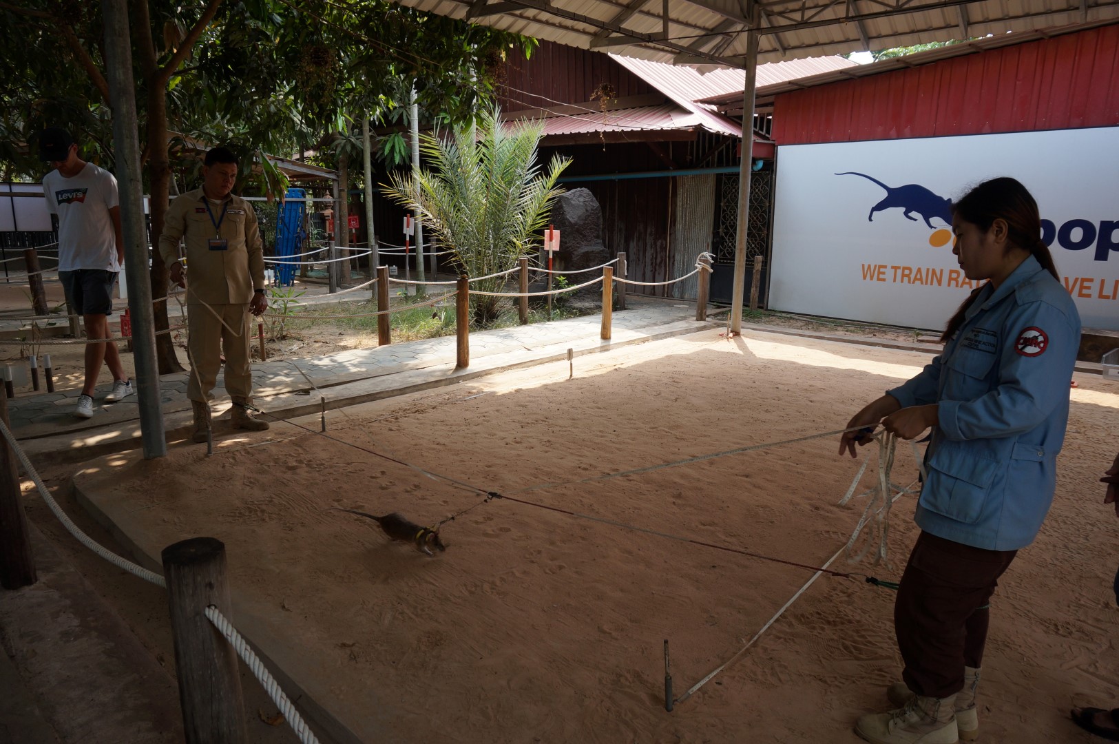 Tempels zal je tijdens een bezoek aan Siem Reap in overvloed zien, zoveel is zeker. Daarom zoeken we tijdens de laatste dag naar een alternatief voor al die tempelbezoeken en dat vinden we. We brengen vanmiddag namelijk een bezoek aan Apopo, een project dat in de jaren negentig door Belgen opgestart werd. Apopo traint buidelratten om landmijnen te detecteren en de organisatie is dus actief in (voormalige) oorlogsgebieden. Aanvankelijk deed men dat in Afrika, maar sinds 2013 spoort men ook in Cambodja landmijnen op. Dit land heeft in het verleden veel bloederige conflicten gekend en draagt daar vandaag nog steeds de gevolgen van. Sommige delen van het land liggen nog steeds bezaaid met mijnen, maar Apopo wil die stapsgewijs opsporen en onschadelijk maken.