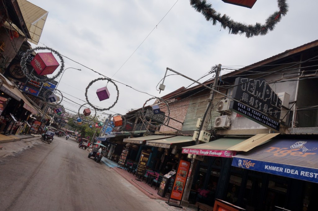Vraag je jezelf af hoe Pub Street en de omgeving er uit zien rond het middaguur? Dan heb ik het volgende antwoord: troosteloos. Tijdens onze laatste dag bezoeken we geen tempels in het Angkor Archaeological Park, waardoor we extra tijd in Siem Reap doorbrengen. De meeste zaken op Pub Street zijn ook ‘s middags open en er zit altijd wel wat volk, maar de sfeer van ‘s avonds lijkt ver weg. Gelukkig zijn er nog andere dingen in de binnenstad die je als toerist kan bezoeken.