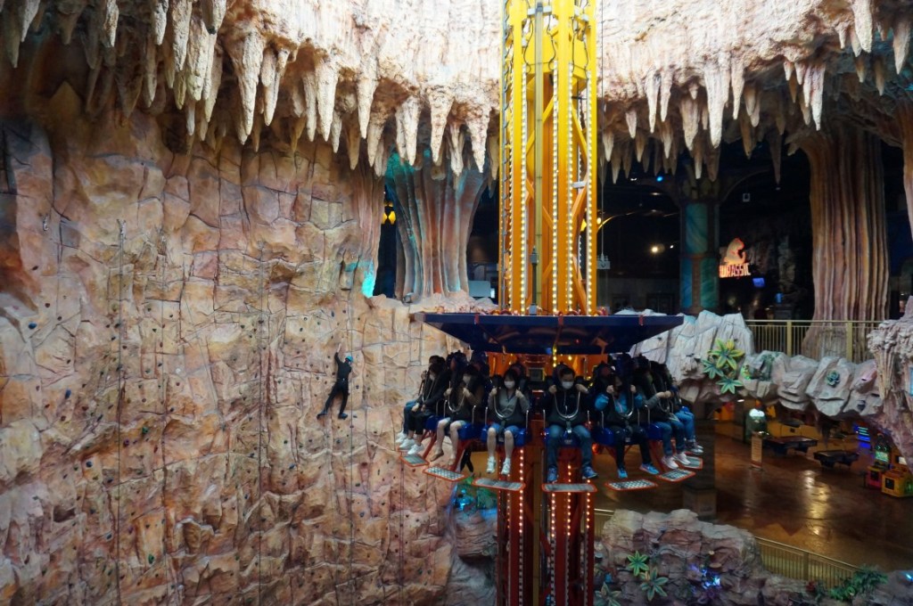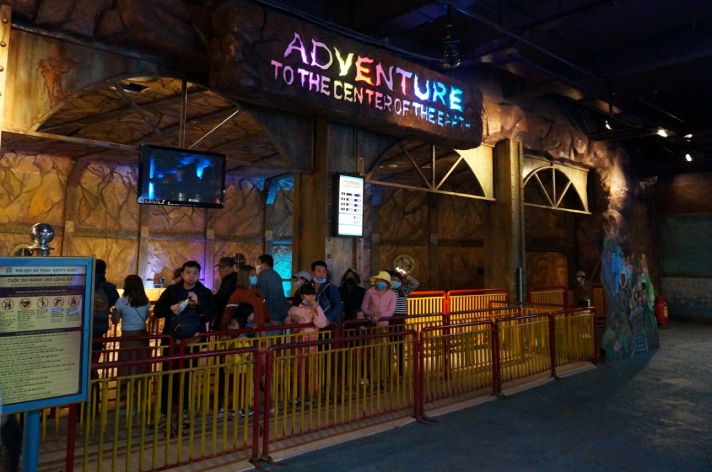 Dark rides vind ik interessanter. De imposante toegangspoort van Back to Jurassic spreekt me daardoor meteen aan, al blijkt het uiteindelijk slechts een walk-through. Hoewel het transportsysteem ontbreekt en de belichting een beetje te onsubtiel is, valt Back to Jurassic eigenlijk wel mee. De topper van Fantasy Park is echter Adventure to the Center of the Earth, die op de benedenverdieping verstopt werd. Dat deze dark ride niet kan tippen aan z’n bijna-naamgenoot in Tokyo DisneySea, verbaast niet. Dat merk je aan de kermisachtige karretjes, aan het simpele naambord en aan het incoherente thema. Want wanneer je zombies, het wilde westen en vleesetende planten met elkaar combineert, dan krijg je een heel bijzondere verhaallijn. Ik mag tussendoor trouwens ook met een lasergun knallen, wat het geheel nog chaotischer maakt. Maar weet je wat? Ik zou na deze reis moeten concluderen dat Adventure to the Center of the Earth m’n favoriete Vietnamese dark ride is. Het is namelijk de enige die we tijdens deze twee weken tegenkomen.