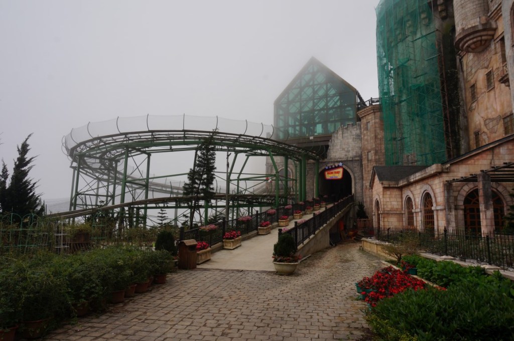Hoewel er in het Franse gedeelte geen achtbanen staan, heeft Sun World Ba Na Hills volgens coaster-count maar liefst vier credits in de aanbieding. Helaas is de coastergod (ik noem ‘m voor het gemak even Boeddhachtbaan) me vandaag niet gunstig gezind, al schuift hij de schuld gedeeltelijk door naar de weergoden. Het park heeft in totaal vier Alpine Coasters. Twee daarvan zijn momenteel in jaarlijks onderhoud, de andere twee blijven gesloten omwille van de mist. Ik moet toegeven dat Alpine Coasters niet meteen de ultieme thrill rides zijn, maar binnen het schamele attractieaanbod van Ba Na Hills keek ik er toch naar uit. Jammer, maar helaas… geen Vietnamese achtbaanpunten voor Glenn vandaag.
