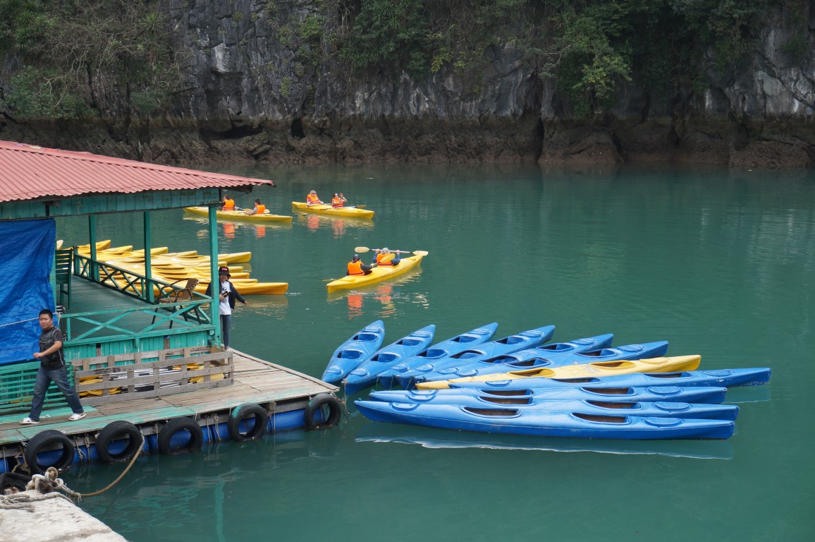 Het tripje naar de Verrassingsgrot begon wat moeizaam, maar het werd uiteindelijk best een imposante belevenis. Toegegeven… je voelt jezelf hier een toerist in een héél lange rij, maar goed. Dat is een gevoel dat je dan even moet negeren. Ongeveer de helft van die lange rij toeristen gaat achteraf kajakken in Ha Long Bay, maar deze activiteit sla ik zelf over. Een cocktail slurpen op het bovendek van onze boot, dat lijkt me persoonlijk leuker. Dankzij de prachtige uitzichten smaakt zo’n Singapore Sling zelfs nog beter.
