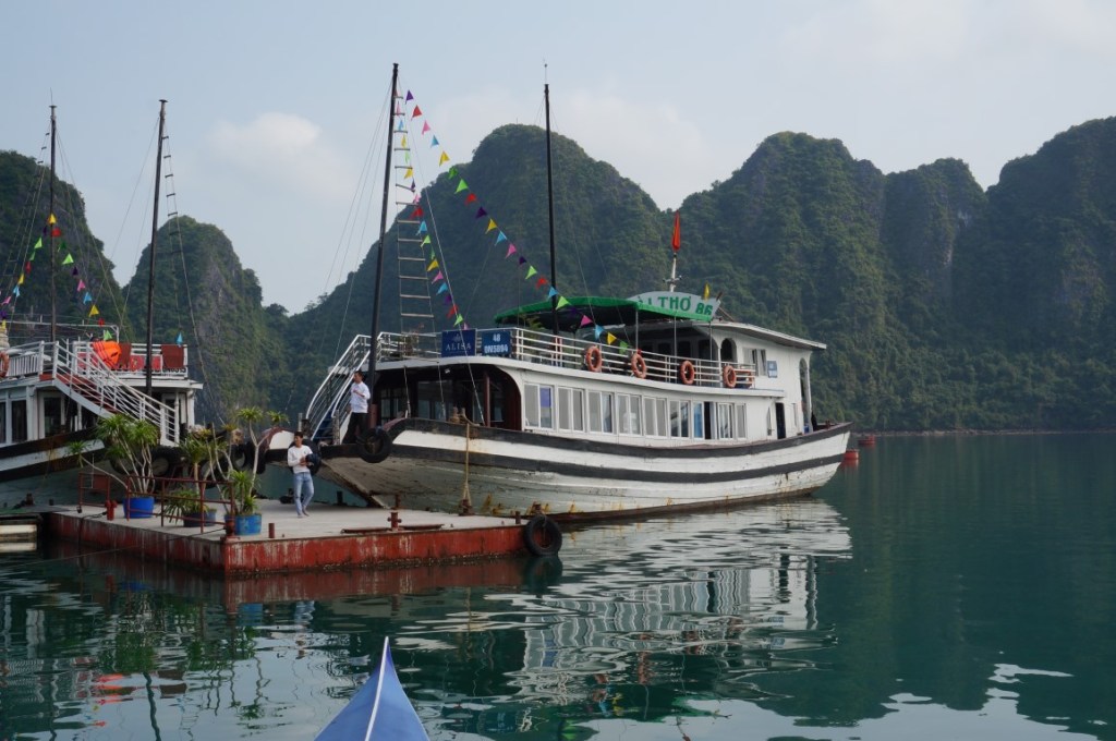 De 1969 eilanden van Ha Long Bay verkennen, hoe werkt dat dan precies? Er zijn verschillende opties, maar je moet sowieso het water op. Dat kan met een boottocht van één dag, met een overzetboot richting Cat Ba (het grootste eiland van de baai, in ‘t bijzonder geliefd bij backpackende jongeren) of met een meerdaagse cruise. Zulke cruises zijn eenvoudig te reserveren met behulp van booking.com, al maakt het enorme aanbod de keuze best lastig. Net zoals dat bij m’n dagtrip naar Ninh Binh het geval was, biedt ook hier elke maatschappij een gelijkaardig programma aan. In iedere routebeschrijving gaat het wel over een grot, een kajak-activiteit en Ti Top Island. We maakten onze keuze dus vooral met de ogen. Welke website geeft ons het beste gevoel? Welk schip ziet er op de foto’s het mooist uit? En welke maatschappij scoort goed op TripAdvisor? Alisa Premier kwam als winnaar uit de bus. Je betaalt voor deze cruise weliswaar enkele tientallen euro’s meer dan voor de meeste andere, maar het prijsverschil is verantwoord. Tijdens deze driedaagse merk ik namelijk dat Alisa Premier en President Cruises de mooiste schepen van Ha Long Bay hebben. Vele andere maatschappijen varen met boten die er toch wat… ehm… verdacht uit zien.