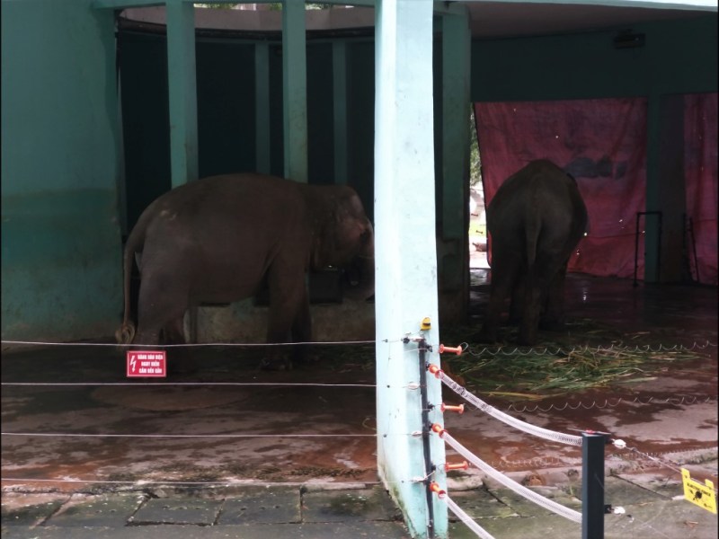 Dit olifantenverblijf riep het meest wrange gevoel op. Niet omwille van het gedateerde uiterlijk, wel omdat deze twee kanjers met een stalen ketting aan de betonnen vloer verankerd waren. Je kan het op de volgende foto nauwelijks zien, maar die ketting is wellicht niet langer dan een meter. Hoewel het perk eigenlijk best ruim is, lijkt het er dus op dat de olifanten van Hanoi Zoo hun dagen vastgebonden doorbrengen. Gevangenschap is sowieso nooit de beste optie, maar dit was pas helemaal schrijnend. Ondanks het feit dat ik mezelf niet als een grote dierenvriend beschouw, deed het pijn om dit tafereel te zien.