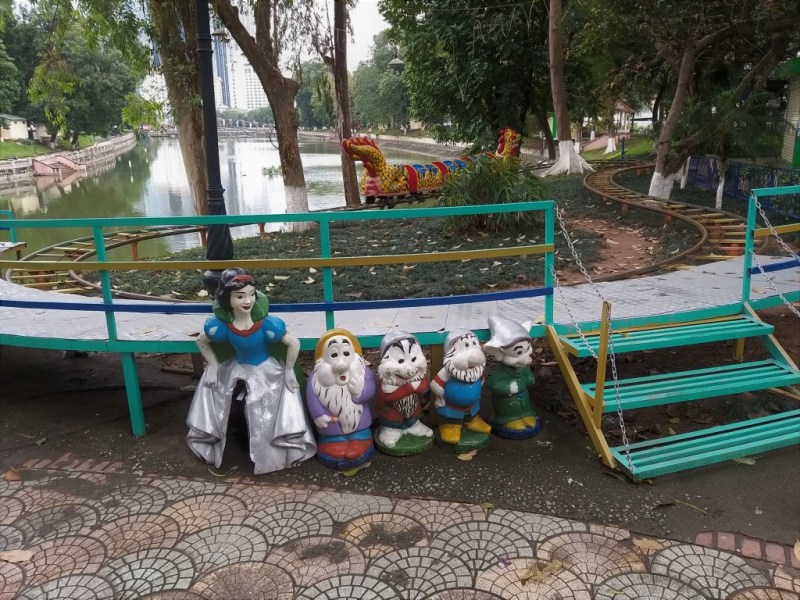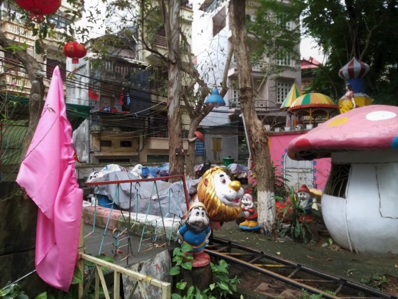Ik had stiekem gehoopt dat de Hanoi Zoo m’n zevenhonderdste credit zou opleveren, maar dat feestelijke ritje bleek plots heel ver weg. Sterker nog: wanneer ik de attracties van dit park ontdekte, voelde het haast alsof ik aan urban exploring deed. Beweging was er alleszins niet te zien en alles bleef dicht. De eerste gemiste credit heette Roller Coaster en werd met een Mickey Mouse-standbeeldje opgefleurd. Credit nummer twee was Snow White & The 7 Dwarfs. Dit is zonder meer een cult-attractie. Het is een soort rondrit op achtbaanspoor die gedecoreerd werd met tuinkabouters, Chinese lampions en andere rommel uit de Blokker. Bewoners van de vlakbij gelegen flatgebouwen apprecieerden de rust waarschijnlijk wel, maar ik had deze foute ride toch graag bezocht.