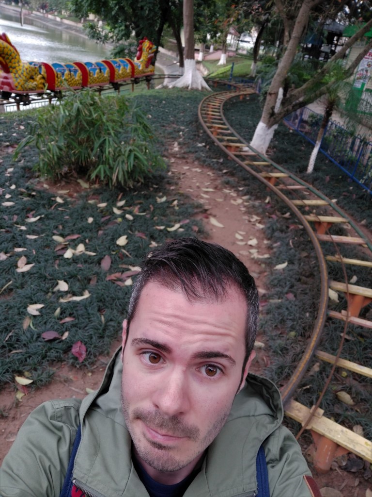 Hetzelfde tafereel speelde zich af bij Rising Sun Park, dat op een dikke twintig minuten wandelen van m’n hotel lag. Wanneer ik aan kwam lopen, voelde ik al nattigheid. Het reuzenrad stond stil en ik zag evenmin beweging bij de enige achtbaan van het park. Deze Hanoi Steel Dragon is een dubbele corkscrew van Meisho Amusement Machines. Hij zag er behoorlijk versleten en pijnlijk uit, maar ik had deze unieke credit erg graag binnengehaald. Onmogelijk, zo bleek. Wanneer ik de toegangspoort van Rising Sun Park naderde, kwam er een personeelslid aangelopen en hij maakte een groot kruisteken met z’n beide armen. Ook dit park bleef gesloten en ik leerde op Facebook dat COVID-19 nogmaals de schuldige was. Rising Sun Park (of HoTay Theme Park, zoals Roller Coaster Database het noemt) is trouwens het makkelijkst bereikbare pretpark vanuit het toeristische centrum van Hanoi. Je vindt het aan de oevers van het gigantische West Lake, dat gek genoeg in het noorden van de stad ligt.