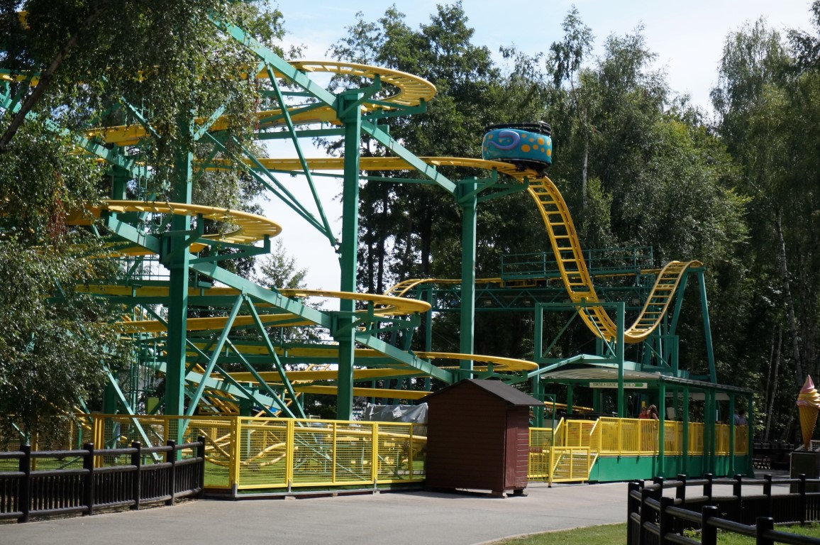Pax Company heeft in onze contreien niet veel achtbanen gebouwd. Vertrouwt een gemiddeld West-Europees pretpark deze Russische constructeur niet? Het lijkt me best mogelijk. Parc Saint Paul zag echter geen probleem en klopte twee keer aan bij Pax. In 2005 mochten de Russen Formule 1 installeren (het resultaat daarvan kennen we) en vijf jaar eerder werd Wild Train geopend. Ik weet niet wat ik van deze achtbaan moet denken. Enerzijds heb ik lof voor de extreem compacte lay-out, de soepelheid en de overdosis airtime die je backseat voorgeschoteld krijgt. Anderzijds zitten er zeer onnatuurlijke knikken in de baan en het lijkt bovendien alsof Wild Train elk moment uit elkaar kan vallen. Ik hou van spannende coasters, maar als de spanning vooral bestaat uit ‘zakken we dadelijk door de wielbasis of niet?’… dan lijkt dat niet de bedoeling.