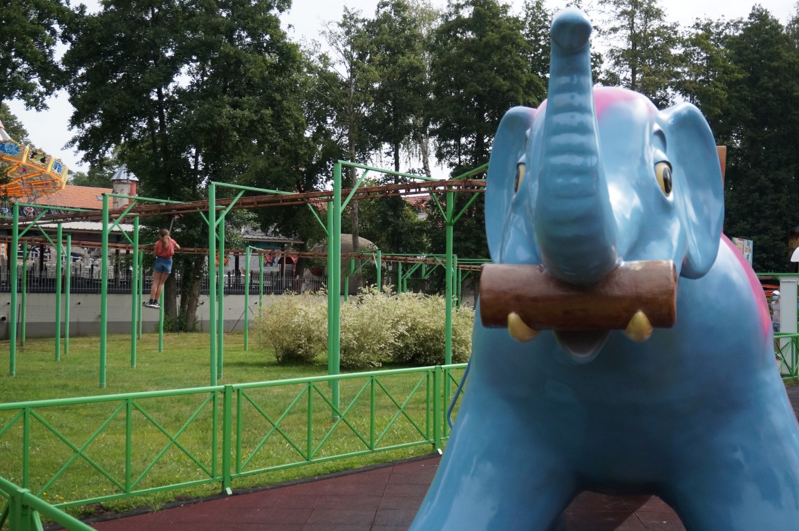 Formule 1 is sinds het ongeval gesloten en de nabije omgeving werd afgeschermd. Dat is logisch en voor mij persoonlijk geen grote ramp. De credit van deze gekke Russische achtbaan haalde ik immers in 2008 al binnen. Sindsdien heeft Parc Saint Paul echter niet stil gezeten en er zijn vandaag behoorlijk wat nieuwigheden te ontdekken. De eerste is Aérotrain, een Junior Coaster van Vekoma. Deze rood-blauwe constructie staat vlak naast de toegangspoort van het park en oogt best modern. Toch ontdekken we dat het een tweedehandsje is: de baan werd geïmporteerd uit Portugal, waar hij vroeger meedraaide in een overdekt pretpark in Lissabon. Dat verklaart meteen waarom Aérotrain enkele gekke knikken bevat, maar al bij al is dit een uitstekende familieachtbaan.