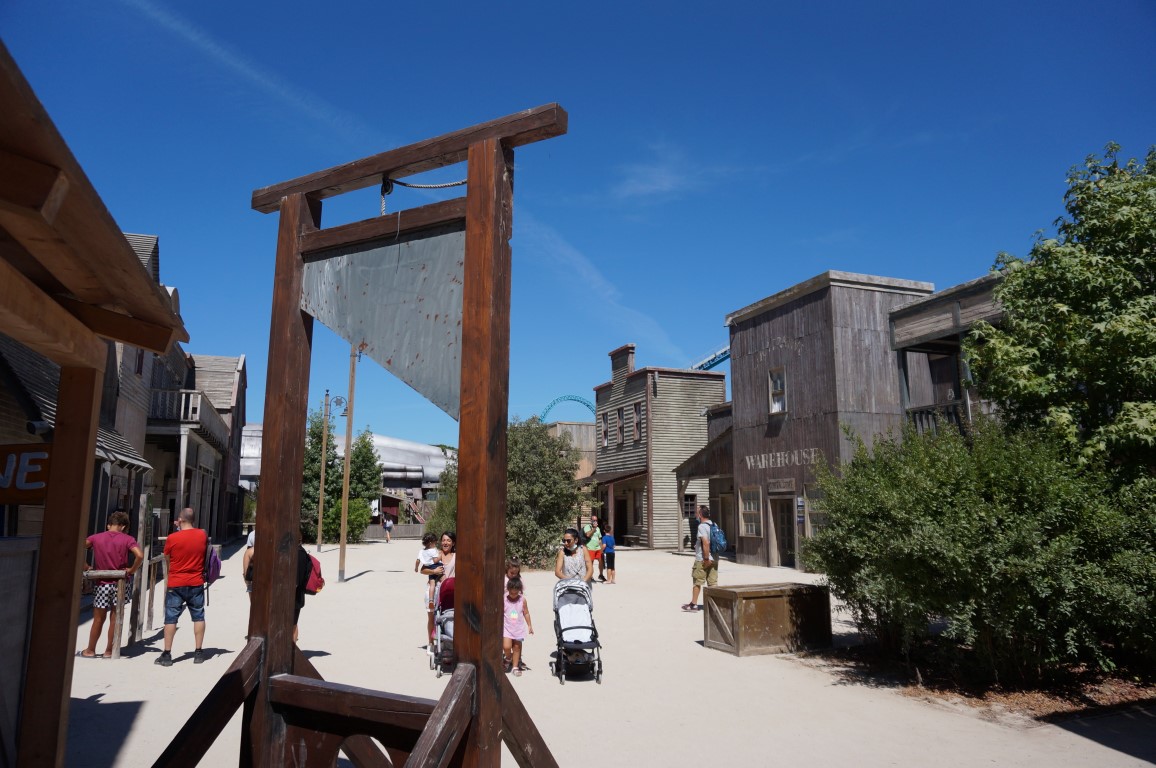 De omgeving van Altair werd opgevuld met goedkoop aandoende kinderattracties. Leuk voor de jongsten, maar wij zoeken ons vertier liever elders. In het vlakbij gelegen westerndorp, bijvoorbeeld. We zijn net op tijd voor de Far West Show en die is klaarblijkelijk voorzien op papa’s die tegen hun zin meegesleurd werden naar het park. De cowgirls in deze voorstelling werden immers niet enkel gecast omwille van hun dansmoves, maar ook dankzij hun ehm… overige troeven. Gelukkig werd er eveneens aan bezoekers met andere voorkeuren gedacht, want Mr Cowboy mag zijn ranch ook gerust eens laten zien.