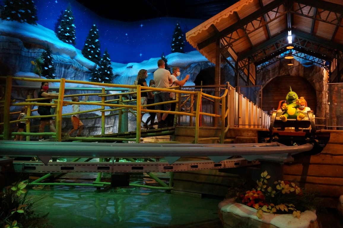 De opvallendste attracties zijn weggelegd voor de – mij volledig onbekende – serie Mia and Me (een slingerende molen), Heidi (een carrousel met houten dieren) en het schattige draakje Tabaluga. Tabalugas Achterbahn is een moderne Zierer-achtbaan, net zoals de versies in Plopsa Indoor Hasselt en Coevorden. Hij is kort, maar verrassend soepel en het thema bevalt uitstekend. We razen dwars door een nachtelijke sterrenhemel en da’s een fijne ervaring.