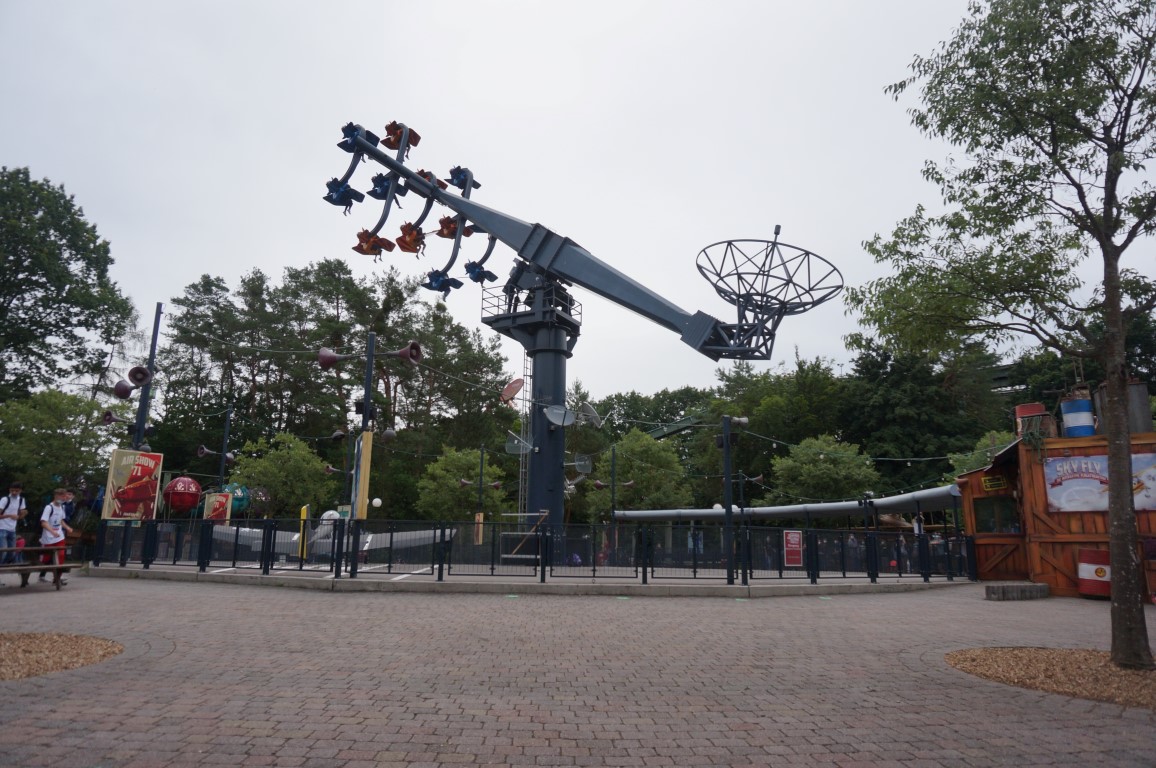 Fans van draaiende attracties worden in Holiday Park op hun wenken bediend. Het park biedt namelijk een enorme hoeveelheid flat rides, die bovendien vaak netjes gegroepeerd zijn. Een van de clusters is themazone Air Show ’71, vernoemd naar het openingsjaar van Holiday Park. Je hoeft geen taalwonder te zijn om te snappen dat de luchtvaart hier centraal staat. Dat vertaalt zich naar de brave Red Baron, een antieke molen met luchtballonnen en een origineel gedecoreerde Wellenflug. De publieksfavoriet in het gebied is echter Sky Fly, de beroemde vliegtuigmolen van Gerstlauer. Dit attractietype is goed vertegenwoordigd in Europa (we zagen enkele dagen geleden nog een ander exemplaar in Tripsdrill), maar een ramp vind ik dat niet. Deze doe-het-zelf-ride is immers fantastisch. Ik ben geen waaghals die dertig achtereenvolgende inversies wil draaien, maar stiekem maak ik er wel een sport van om meer omwentelingen te maken dan mijn medepassagiers. Aangezien driekwart van de inzittenden doorgaans niet begrijpt waar deze attractie om draait (pun intended), is dat trouwens best simpel.
