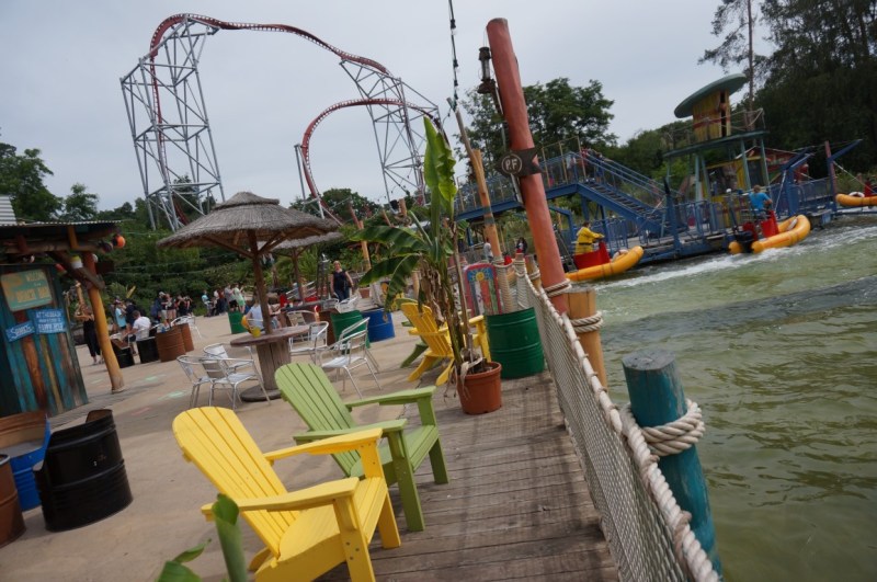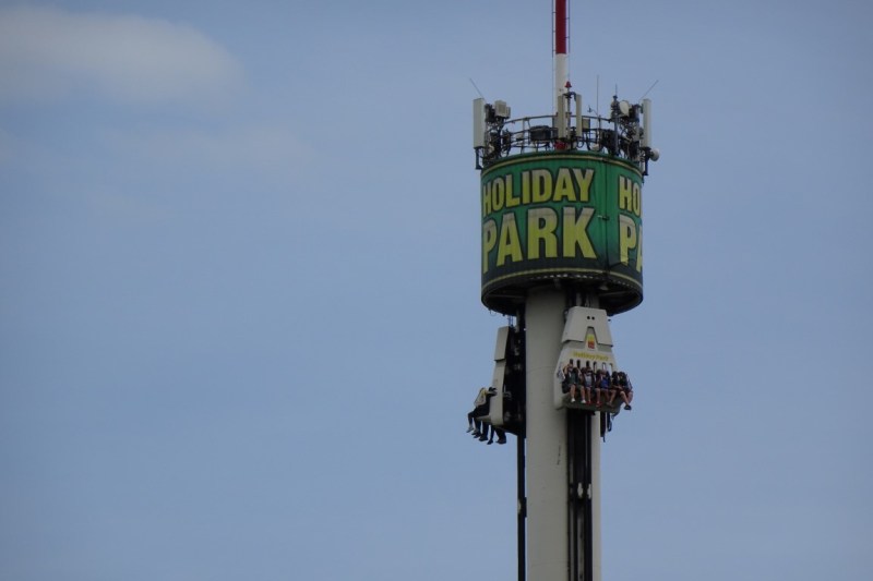 Holiday Park was ooit een pretpark waarin thema een ondergeschikte rol speelde. Sinds Plopsa de scepter zwaait, wordt er echter aanzienlijk gewerkt aan sfeerschepping. Men investeerde enorme bedragen aan decoratieve upgrades en enkele oude parkgedeelten hebben een heuse gedaanteverwisseling ondergaan. Een van de mooiste voorbeelden is The Beach, een zomerse uithoek waarin de sfeer vandaag opperbest is. Centraal op dit plein staat een cocktailbar (Holiday Park krijgt daardoor automatisch het approved-by-Glenn-label) en daarrond liggen een heleboel molens voor uiteenlopende doelgroepen. De allerkleinsten kunnen terecht bij de vissersbootjes, de iets ouderen kiezen voor Plopsa’s geliefde Beach Rescue (zo’n hippe jetski-molen) en Lighthouse Tower. Die laatstgenoemde is een 80 meter hoge Star Flyer met een opvallend lang ritprogramma. We bereiken tot drie maal toe het hoogste punt en hij draait best hard. Misselijkmakend zou ik Lighthouse Tower niet noemen, maar eerlijk… veel langer had die rit voor mij niet moeten duren.