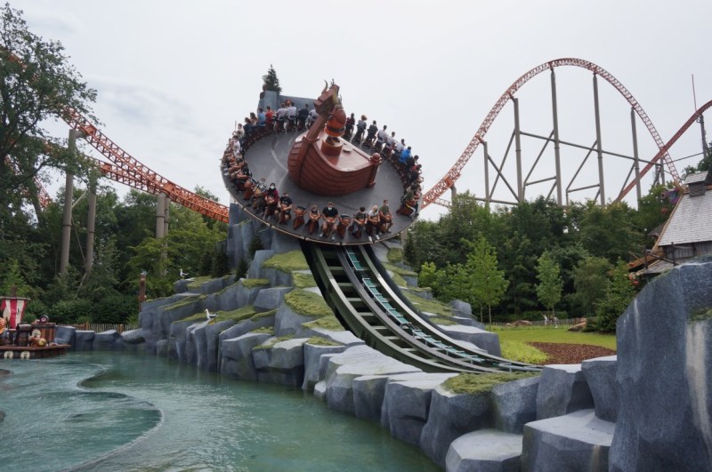 Laat ik maar meteen starten met een gratis tip voor toekomstige bezoekers. Tijdens de eerste twee weken van juli hebben de scholen in de zuidelijke helft van Duitsland nog geen vakantie. Indien je de weekends kan omzeilen, heerst er tijdens deze periode dus geen topdrukte in Holiday Park. Vorig jaar belandde ik hier nog tijdens een uitverkochte dag, maar op maandag 12 juli is het beduidend kalmer. Hoewel we rond de toegangspoort enkele luidruchtige schoolgroepen treffen, begint de dag dus prima. Holiday Park maakt de eerste indruk trouwens nog beter: zelfs een kwartier voor het officiële openingsuur mogen we reeds naar binnen. En wat is de eerste attractie waar we heen lopen? Tja, het antwoord op die vraag is behoorlijk voorspelbaar.