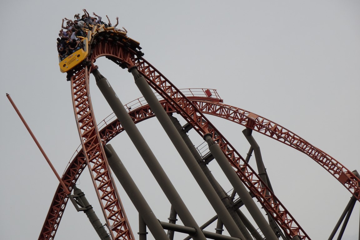 Holiday Park was ooit een regionaal familiepark. In 2001 werd het echter op slag een must-do voor coasterliefhebbers van over de hele planeet. Die internationale aantrekkingskracht is volledig toe te schrijven aan Expedition GeForce, de eerste Intamin Mega Coaster van Europa. Het park heeft sinds die tijd niet stilgezeten, maar GeForce is en blijft de ultieme reden om Holiday Park te bezoeken. Ook het gewone publiek heeft de baan trouwens in z’n hart gesloten; er ontstaat vanochtend dus al vlug een aanzienlijke rij wachtenden. Jammer genoeg wordt die rij nauwelijks korter in de loop van de dag. Sinds enkele jaren rijdt Expedition GeForce standaard met één trein, wat bij een dergelijke topper eigenlijk onaanvaardbaar is. In het beste geval wordt er een trein per vijf minuten gedispatched en dat levert een capaciteit van ongeveer 330 personen per uur op. Pijnlijk.
