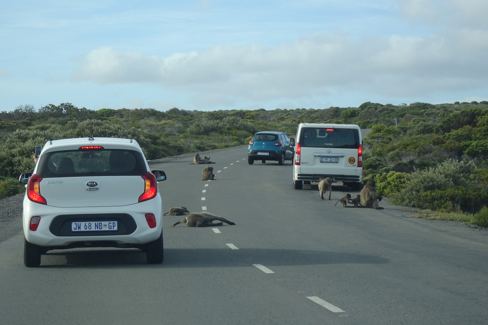 Er valt in Table Mountain National Park nog veel meer wildlife te spotten. We komen bijvoorbeeld langs struisvogels en zogenaamde elandantilopes, terwijl er aan de kustlijn een heleboel zeehonden op de rotsen liggen te zonnen. Terwijl we naar onze volgende stop rijden, merken we bovendien dat haast en spoed zelden goed is. Dat geldt eens te meer wanneer je per auto door het nationale park reist. Wanneer de weg plots overgenomen wordt door een bavianenkolonie, staat het verkeer immers nagenoeg stil.