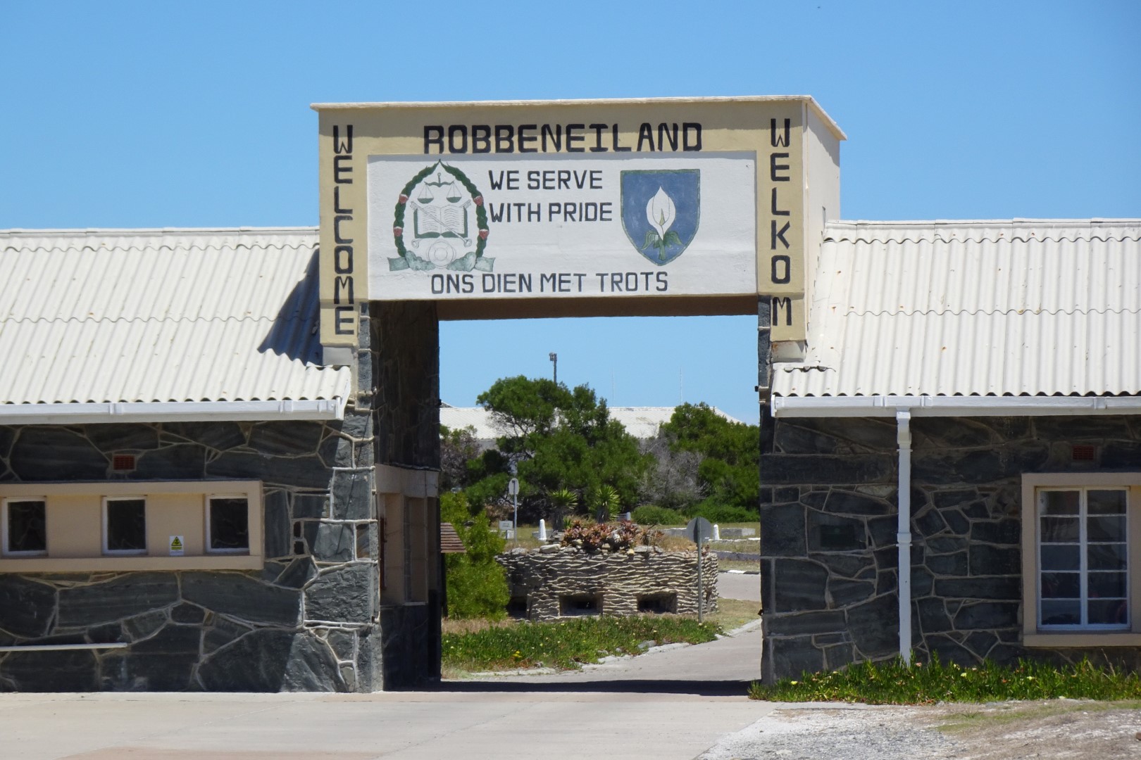 De tour op Robbeneiland bestaat uit twee gedeelten. Het eerste stuk vindt plaats in de tourbus, die in zowat 45 minuten langs enkele landmarks rijdt. Robbeneiland is veel groter dan vele mensen denken, en je kan hier bijgevolg behoorlijk wat kilometers afleggen. De busrit brengt ons onder andere langs de iconische toegangspoort en langs een volwaardig dorp aan de zuidoostelijke zijde van het eiland. Het personeel van de gevangenis woonde vroeger in dit dorp, dat bijvoorbeeld z’n eigen kerk en postkantoor heeft.
